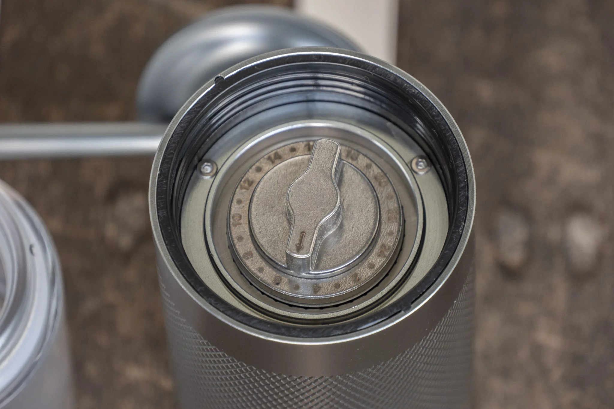 ilyenkor az edzett acél kúpos őrlő szétzúzza a kávészemeket, és innen a darálék az alsó üvegtartályba hullik, aminek a szélén van egy aromazáró gyűrű is. Az őrlési finomságot egy 23 elemű skálán lehet állítani úgy, hogy leveszitek az üveg tárolót, felfordítjátok a szerkezetet, és a karral ellentartva elforgatjátok a mechanikát addig, amíg a kívánt pozícióba nem kerülnek a kések. Az őrlemény szemcsésségét alapvetően az határozza meg, hogy milyen megoldással fogjátok a kávét elkészíteni, és mivel nekem itthon egy BlitzHome BH-CM1503 kódszámú – egyébként De’Longhi licensz alapján készült, átbrandelt – eszpresszó készítésre leginkább alkalmas kávéfőzőm van, ami nem tud darálni, ezért a sajtóanyagban található szemcsésséget is ehhez állítottam be a tárcsán.