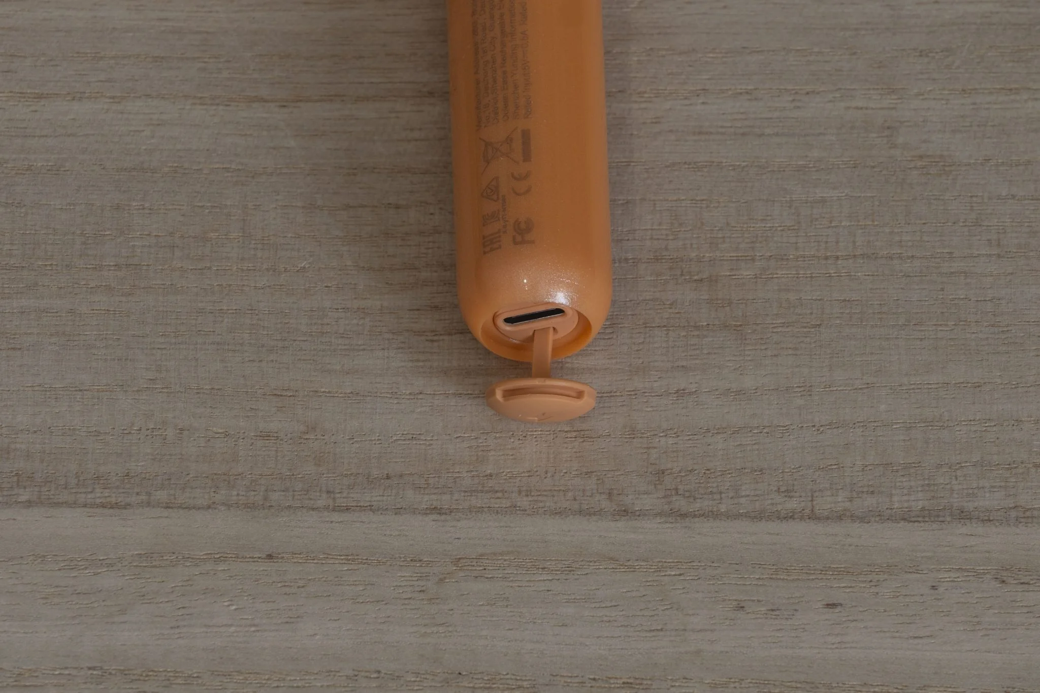 Számszerűsítsük az Oclean Ease előbbi paramétereit: mindössze 67 gramm, 22 centi magas és nagyjából 3 centiméter átmérőjű, az IPX7-es szabványt teljesítő hengertest, vagyis nagyon kicsi. Szinte zsebre vágható, így nem titkolt cél a könnyű hordozhatóság. Az univerzalitást a Type-C port is elősegíti, a töltés ezen keresztül történik, 2 óra alatt egy átlagos telefontöltőről tele lehet nyomni az akkut, ami 120 nap üzemidőt biztosít.