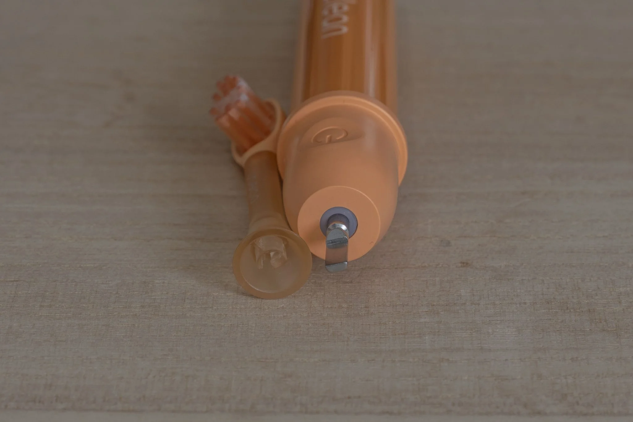 Előbbi egy teljesen egyszerű szűkítőfej egy szilikon véggel, ezt használtam, míg utóbbi egy sörtés fej, amivel lehet fizikai pucolást is végezni. A fejet a szemből jobb felül található nyílásba kell illeszteni, de amúgy ez tárolásra is alkalmas, ha fordítva dugjátok bele. És nagyjából ennyit kell tudni a használathoz, elég egyszerű szerkezet az Oclean Airpump A10, nem kell majd sokat gondolkodnotok a beüzemeléshez.