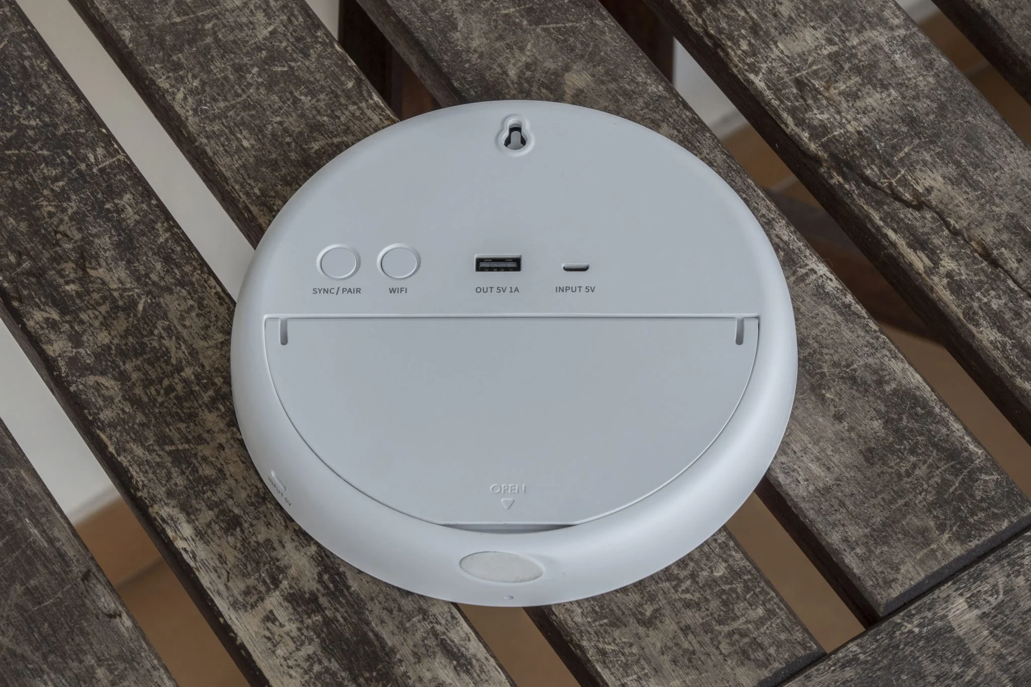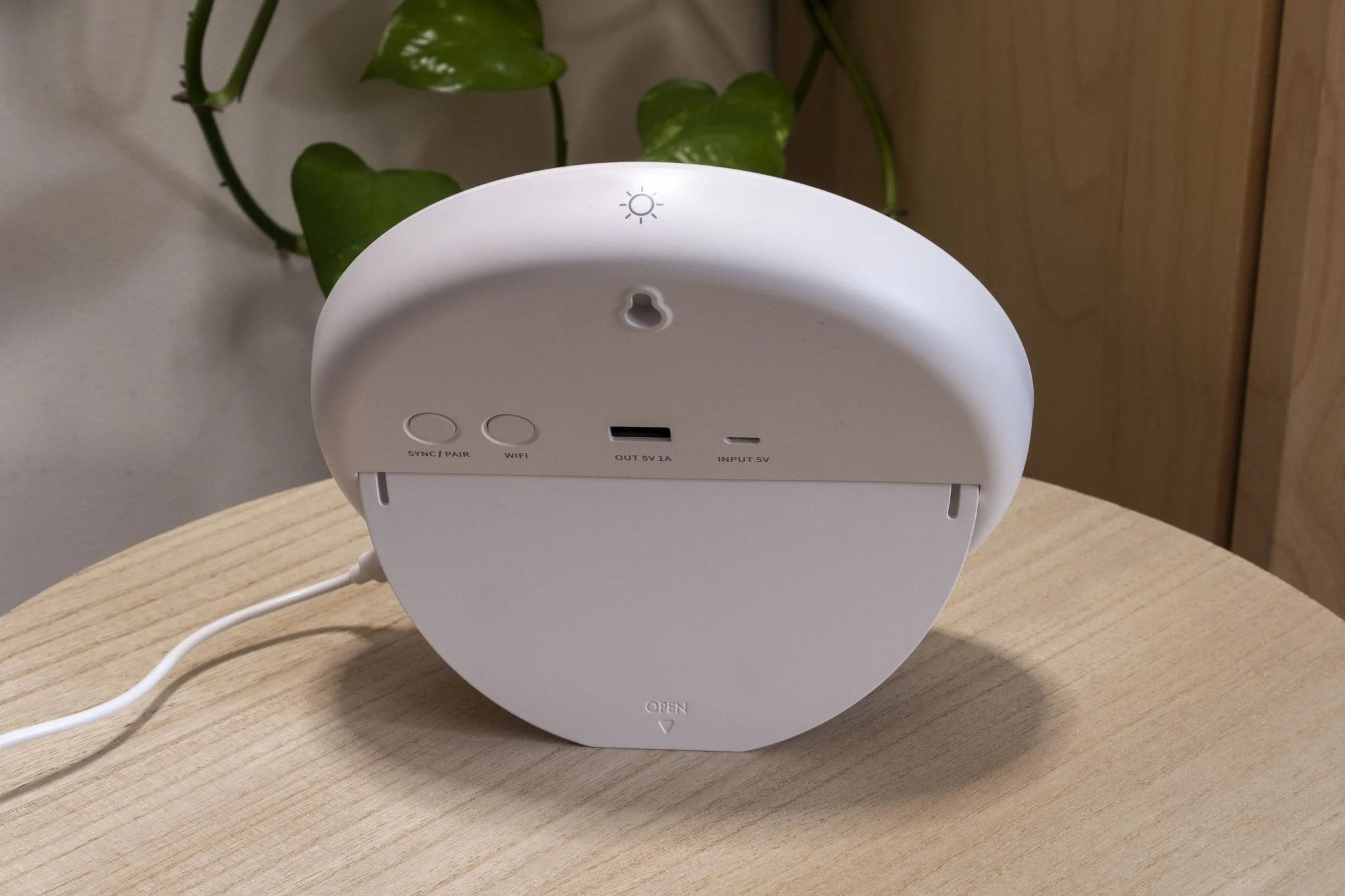 felül tapizva a fényerőt állíthatjátok 4 lépcsőben, illetve mivel ez egy okoseszköz, ezt a Tuya appból is időzítve szabályozhatjátok. A hátoldalán van egy sync/pair gomb, ami a szenzorokhoz csatlakozást illetve az adatok letöltését valósítja meg, illetve egy WiFi gomb, amivel resetelni lehet a kapcsolatot. Van továbbá 3 darab USB csati, ebből 1 darab egy USB-A kimenet, amivel tovább lehet adni 5 W-nyi energiát, a másik kettő pedig két micro USB bemenet. Miért van kettő? Mert az időjárás-állomás falra is felakasztható, ilyenkor pedig takarná a hátlapon lévő bemenetet, így alulra is tettek egyet.