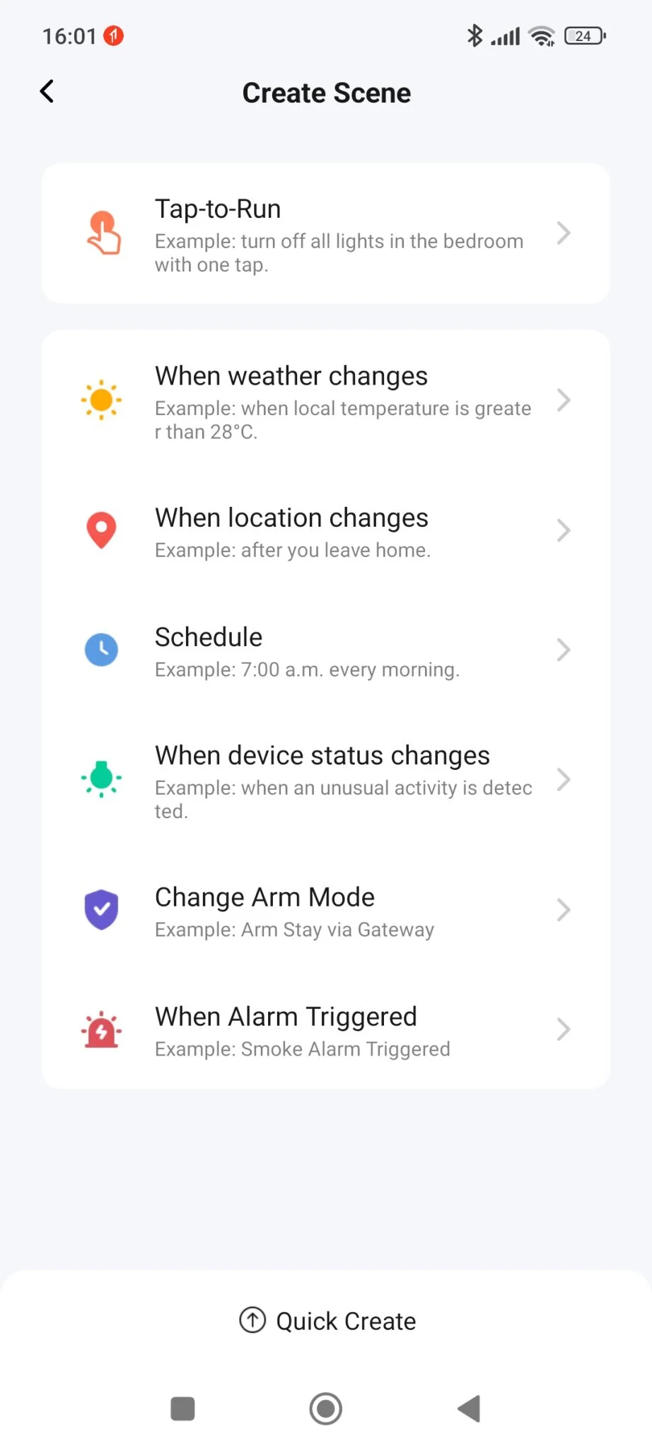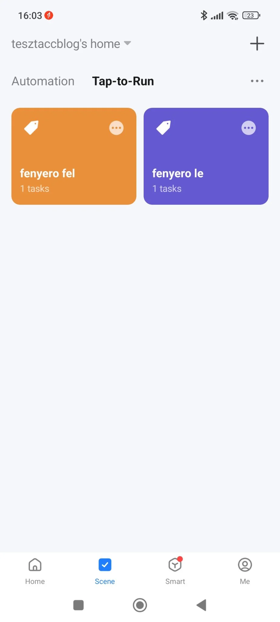 Van továbbá a „Tap to run” opció, amikor az appban lévő gomb megérintésére az eszközön valamilyen paraméter módosítás történik.