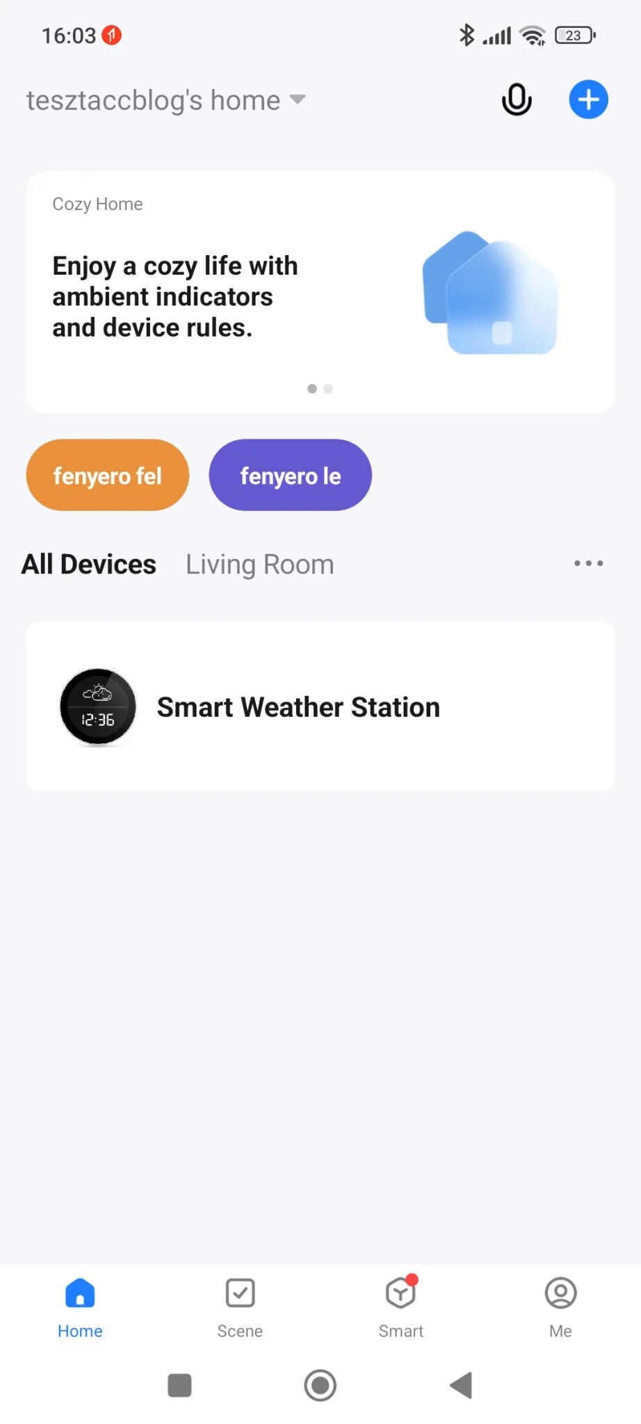 Csináltam két nagyon egyszerűt, a fényerő levételét és a felerősítését, ez nyilván az alvás miatt fontos. Ezeket lehet variálni is, időzíteni, összekötni más eszközökkel, ha vannak ilyenek, de ez már erőteljesen okosotthon építési témakör, a lényeg az, hogy erre is remek alap az SRH-SWS001 időjárás-állomás.