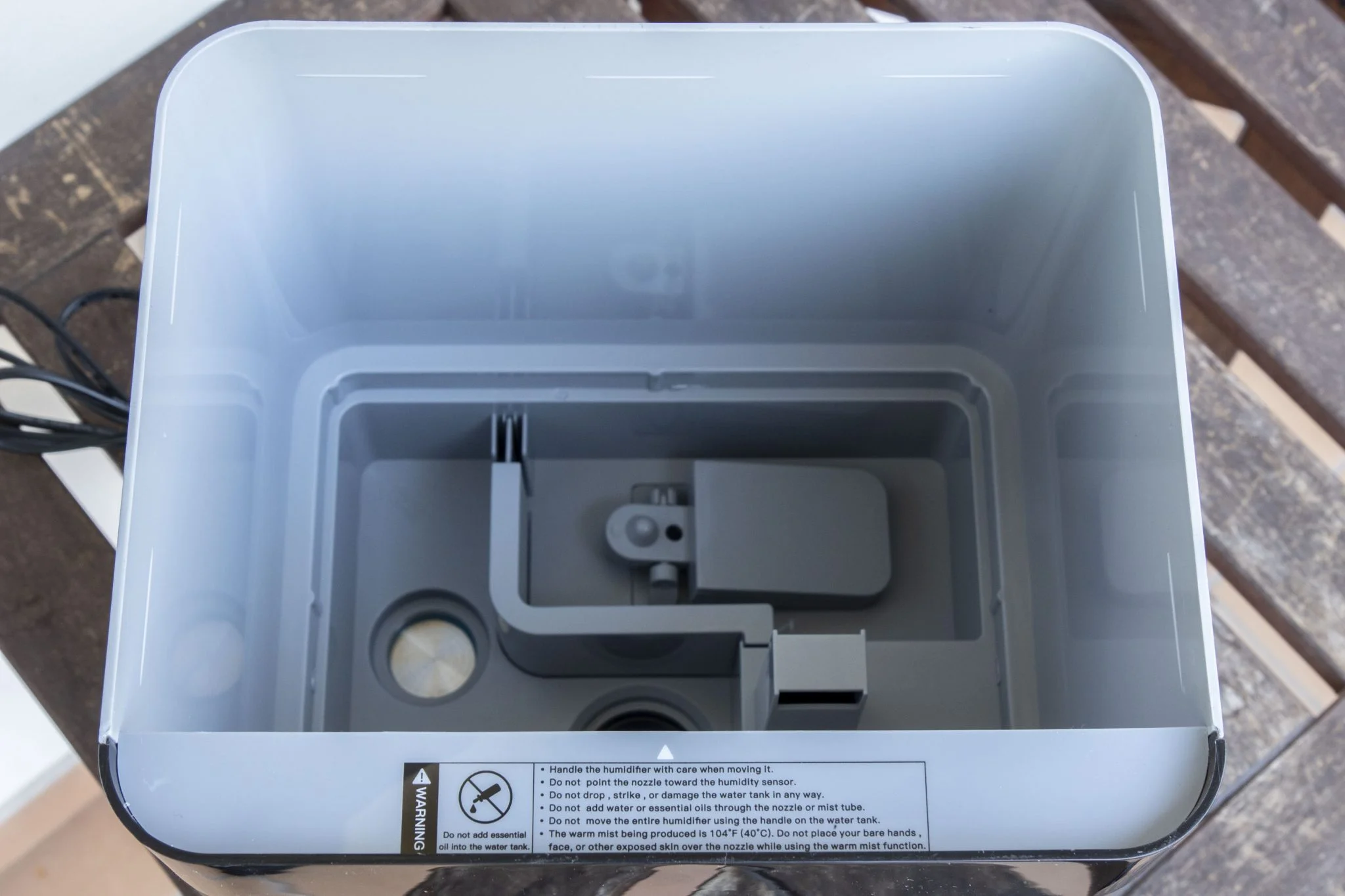 mindaddig, amíg be nem kapcsoljátok a berendezést, ekkor ugyanis felvillan az eddig rejtett vezérlőpanel, ami viszont modern hatást kelt, visszahozva a reményt, hogy ez mégiscsak egy frankó termék. Vezérelni többféleképpen lehet, nyomkodhatjátok a felületet, de jár hozzá egy távirányító is az alap csomag részeként, sőt appal is irányíthatjátok a dolgokat, nyilván ez utóbbi a legkényelmesebb. A kevésbé szemfülesek nem biztos, hogy észreveszik, de a gép oldalán, alul van egy aromapárna, erre lehet illóolajat csepegtetni, így nemcsak párásít, hanem illatosít is az Ultenic H8. Nekem ez viszont annyira nem vált be, helyette a vízbe kevertem az illatanyagot, akkor sokkal jobban érződött a levegőben a hatás. A pára irányát a tetején lévő, forgatható panellal tudjátok irányba állítani, ez nem más, mint egy műanyag kör egy lyukkal.