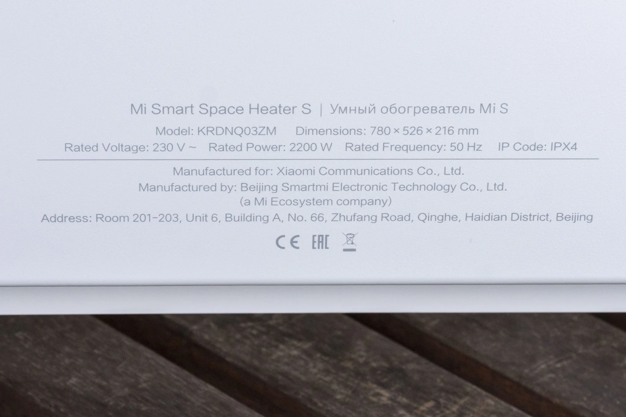 ami természetesen földelt, tehát nem kell átalakítózni, mint a KRDNQ04ZM esetében, ami egy felesleges macerát meg is spórol a felhasználóknak. Nekem nagyon úgy tűnik, hogy ezt a modellt már az európai piacra tervezték, például a forró felületekre figyelmeztető feliratok is angol nyelven olvashatók, de a hátoldalon felsorolt műszaki paraméterek is. A hivatalos neve egyébként Xiaomi Mi Smart Space Heater S, ez is innen derült ki.