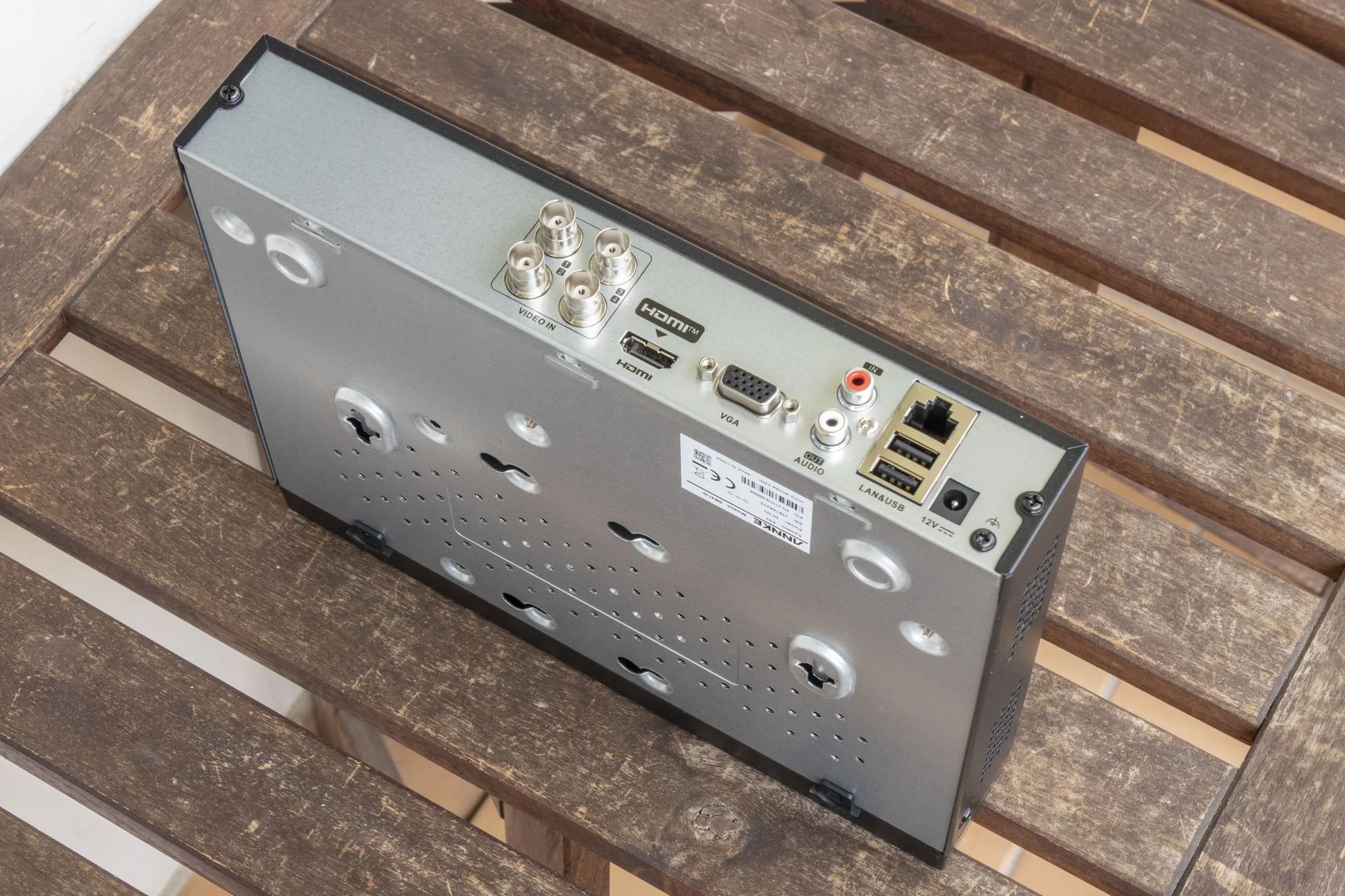 Miután minden össze lett kötve mindennel, már csak az DVR bekapcsolása maradt hátra. On gomb furcsa módon nincs rajta, így amint bedugjuk a konnektorba, indul is a rendszer. Mikor ezt először tesszük meg, akkor végig kell menni egy telepítési folyamaton, ahol többek között meg kell adni az email címünket és egy jelszót, valamint a mobiltelefonoknál megismert jelkódot is. Ezt viszonylag sűrűn kell majd megadnunk, kikapcsolni sem lehet a védelmet, szóval érdemes egy egyszerűbbet megadni. A menükben található navigációra egy egeret mellékel a gyártó, amit a hátulján található USB csatlakozó segítségével tudunk összekötni az egységgel, ebből egyébként kettő található rajta, szóval billentyűzet is köthető rá. AZ USB csatikon kívül találunk még egy LAN, 1 VGA, 1 HDMI, illetve 4 video, 2 audio csatlakozót is az DVR hátulján.