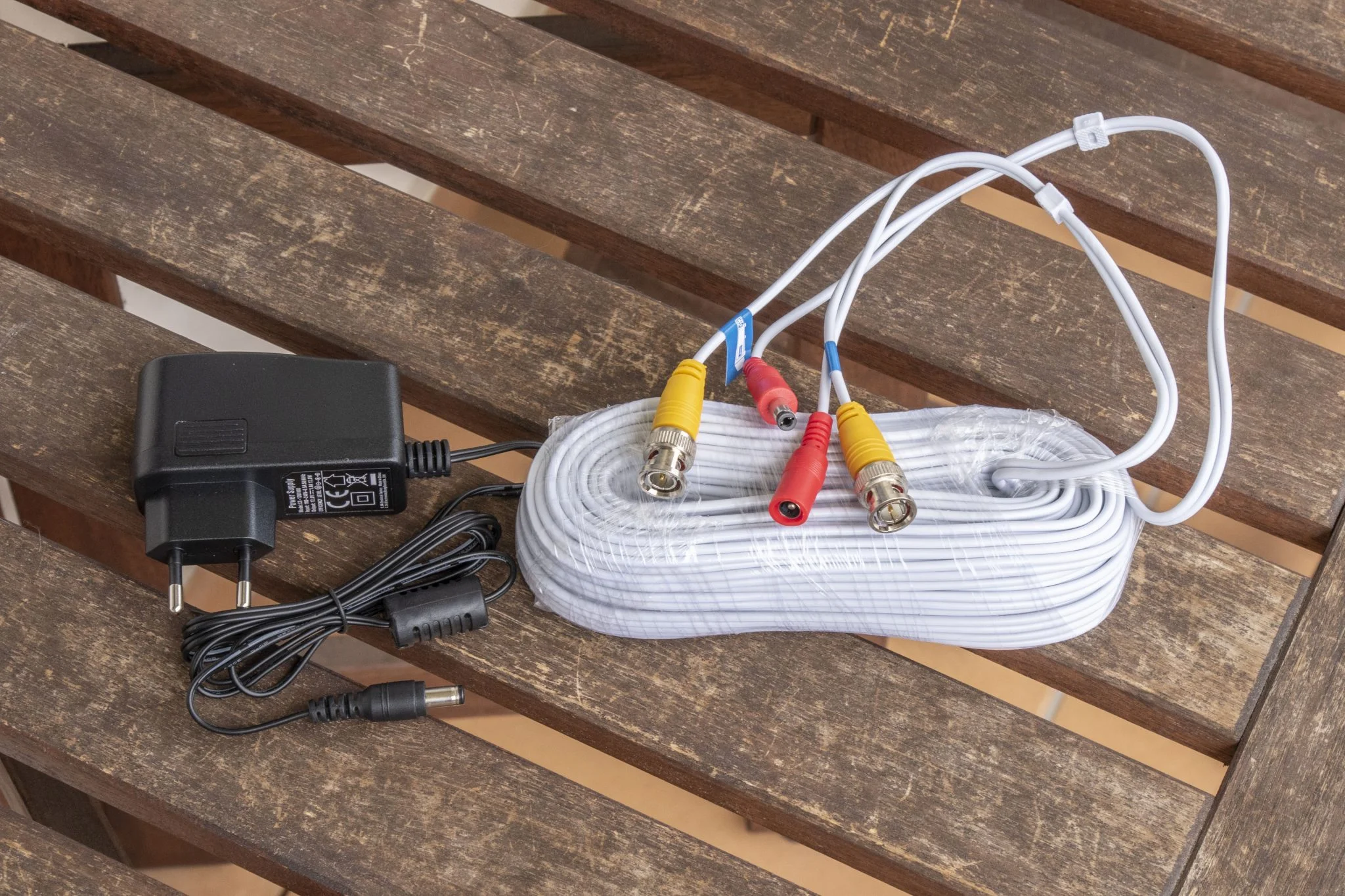 Az IP kameráknál ez némileg egyszerűbb, hiszen a kamera vezeték nélkül csatlakozik vagy a saját vevőjéhez, vagy közvetlenül a routerünkhöz, ott nincsen gond a kábelek elvezetésével. Itt ez trükkösebb volt, de persze korántsem megoldhatatlan, viszont cserébe a kapcsolat mindig atomstabil lesz, főleg mert a csatlakozók is bajonettzáras kialakításúak, így biztosan nem fog csak úgy kicsúszni. A kamerának ezenkívül szüksége van áramellátásra is, amihez szintén kapunk egy sima 230-as dugóban végződő, kb. 1,5 méternyi vezetéket. Ha nincs konnektor a közelben, akkor kis villanyszerelési érzékkel fixre is tudjuk kötni, ami a szabotázs ellen is jól jön. Ha nincs ilyen affinitásunk, akkor érdemesebb szakember segítségét kérni.