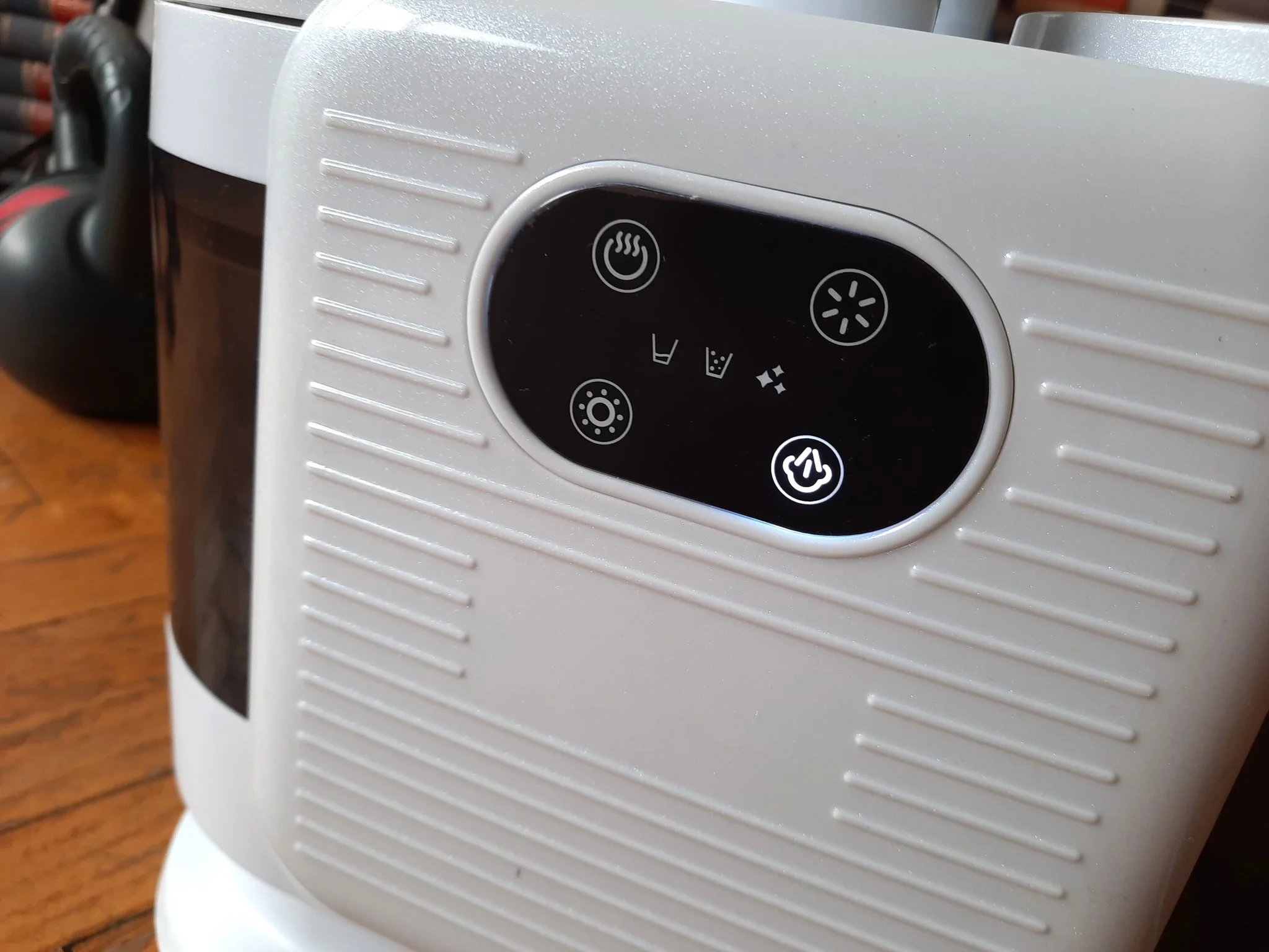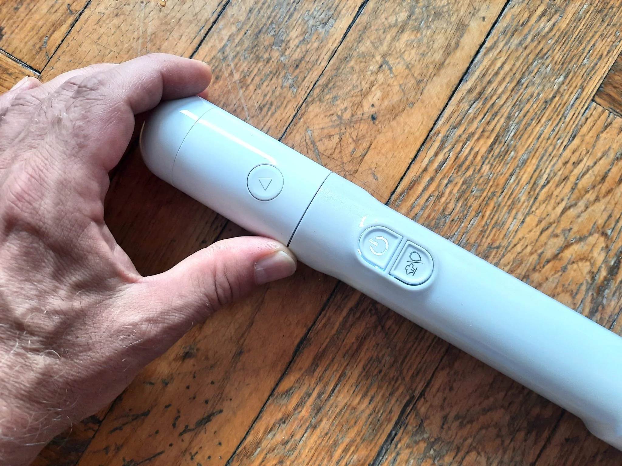 A fej előtti csővégen kapott helyet a két fő vezérlőgomb, természetesen az azonnal elérendő funkciókhoz, ami a ki- és bekapcsolás, valamint a víz/gőz indítása és leállítása. Azzal mindenképp számolj, hogy kivédhetetlen fáziskéséssel fog minden történni, ami a víz és gőz esetében érthető, de – talán – hogy ezt megszokhassuk, a kikapcsolás is pár másodperc után megy végbe a gomb megnyomása után. A rutin, hogy mikor indítsd a vizes/gőzös tisztítást és mikor állítsd meg, idővel majd kialakul. Túlhasználni nem tudod, mivel rögtön figyelmeztet, ha elhárítandó akadályhoz érkezel: esetleg kifogyott a víz az 1,6 literes tartályból vagy épp dugig van a koszos víz 0,95 literes gyűjtője, ekkor bárhol is tartasz éppen, automatikusan leállítja a géppel együtt a folyamatot.