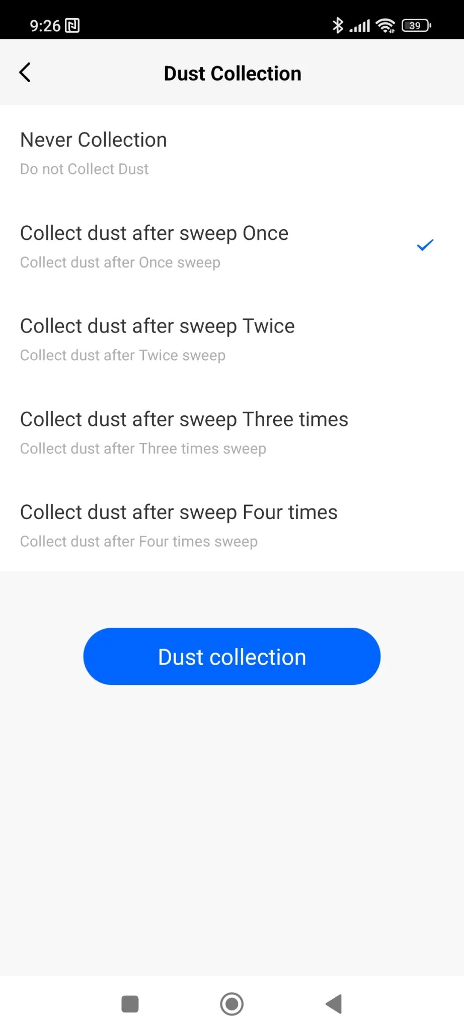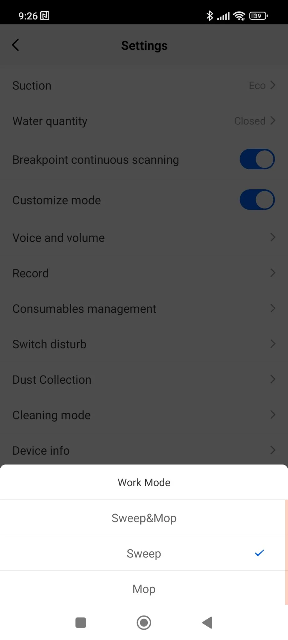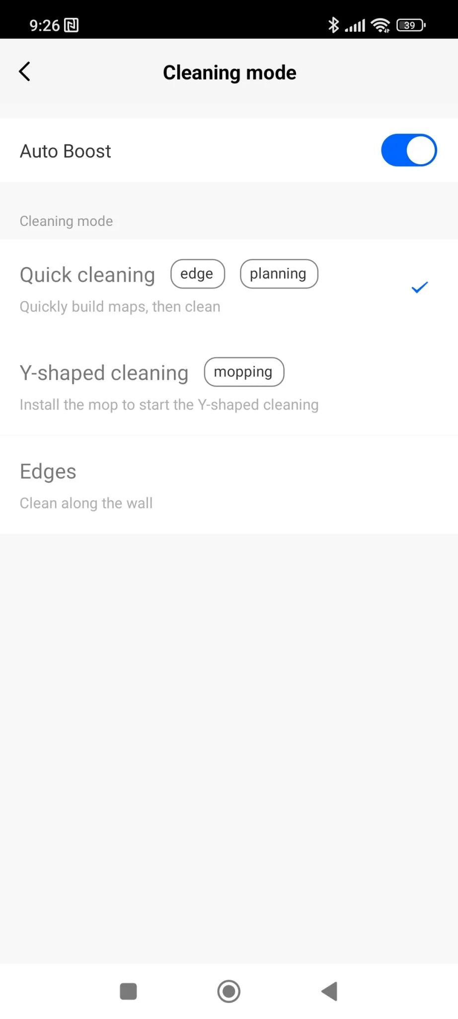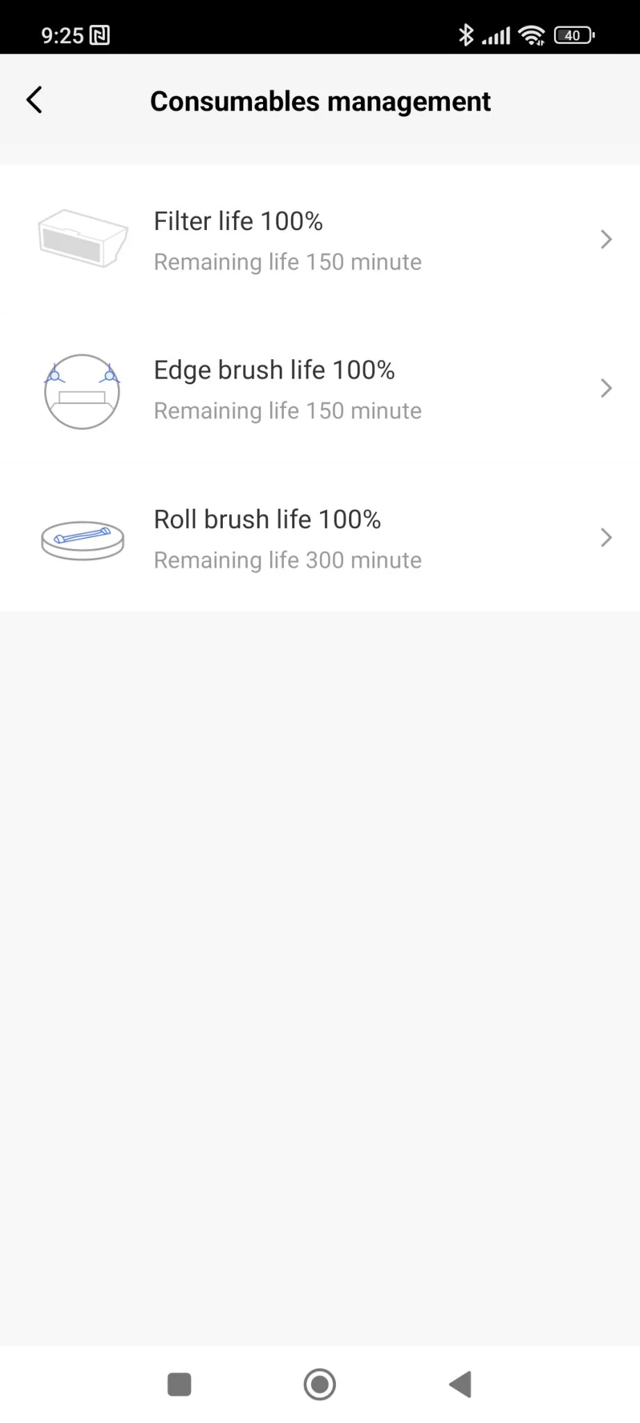 Először fel kell, hogy építse a takarítandó terület térképét, utána fog élni az összes funkció. Addig is, amíg ez megtörténik, érdemes átnézni a menüpontokat, hogy mit tud a robot: