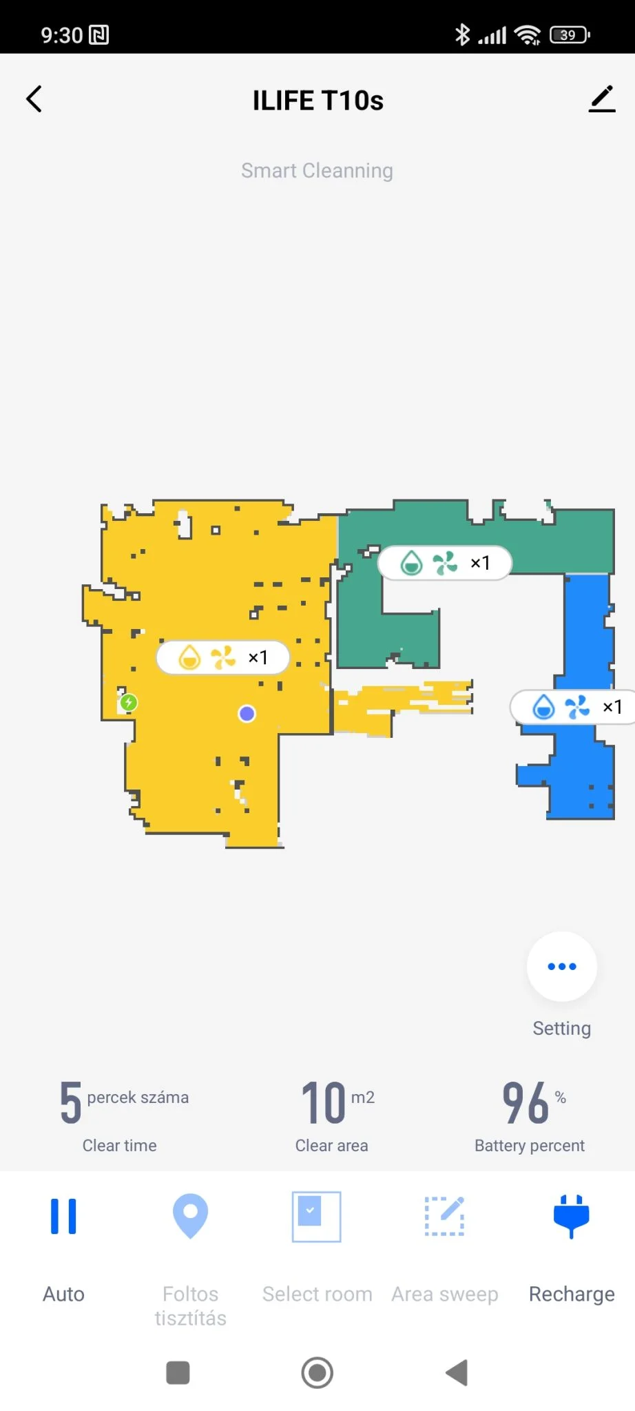 alatta az automatikus frissítések bekapcsolásának a gombja. Mondjuk amit letöltött, azt nem engedte automatikusan a robotra feltölteni, szóval nem tudom, minek is van ott ez a lehetőség. Gyorsan beállítgattam az alap dolgokat, majd szabadjára engedtem a T10S-t, és figyeltem mit csinál. Régebben a buta porszívókat őrjítő volt követni, mert csak felidegesítették az embert, ezek a LiDAR-osok viszont szép szabályosan mozognak, ahogyan az iLife modellje is teszi, olyan xiaomisan.