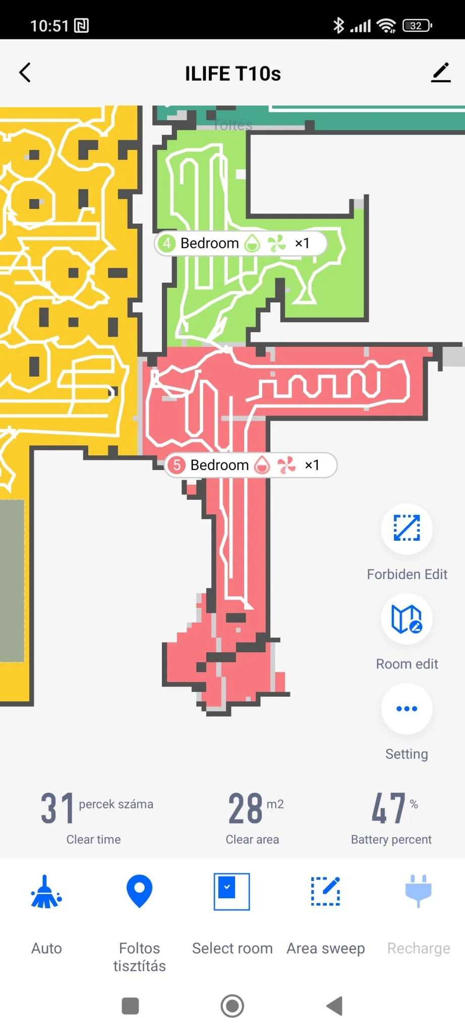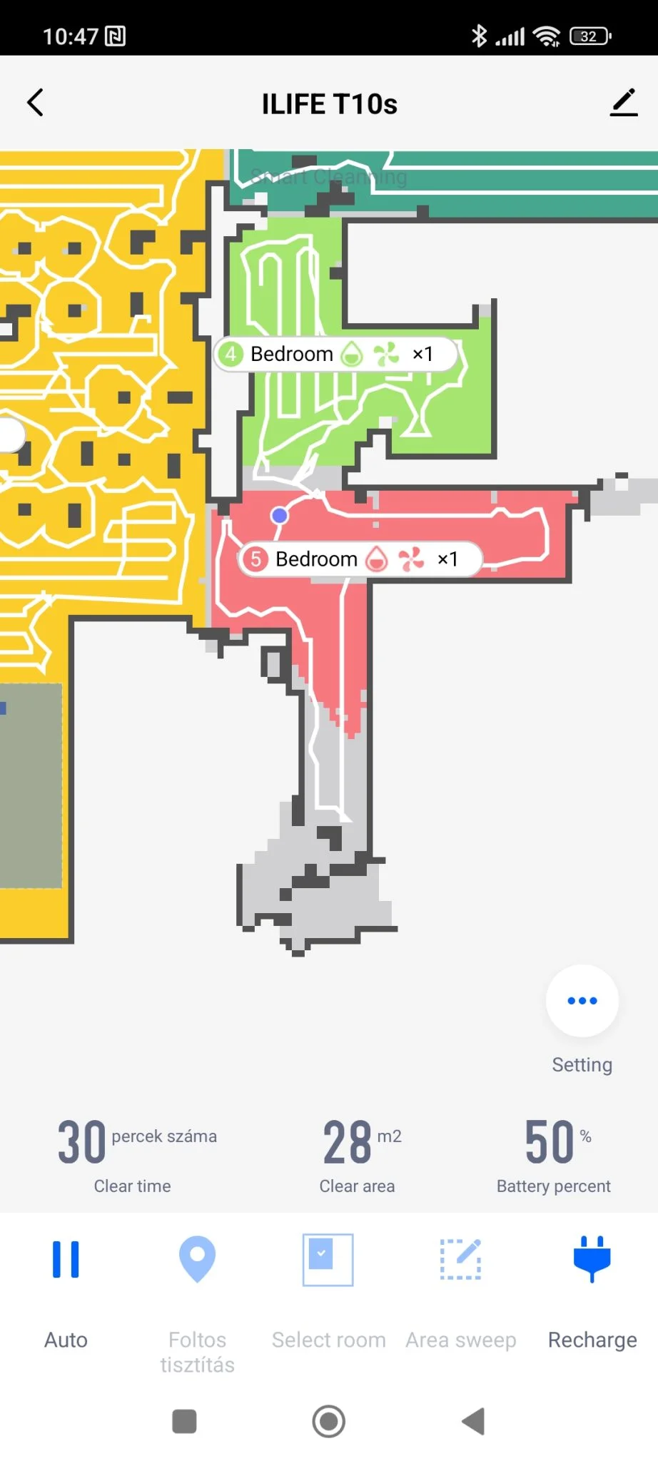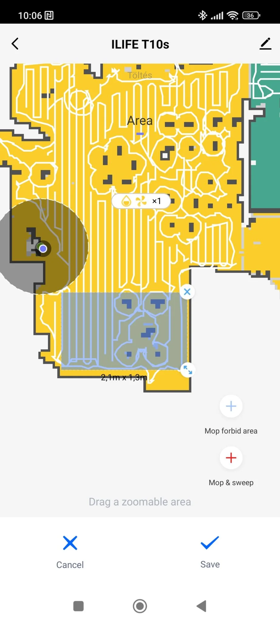 ez is szépen átment rajtuk, ezek szerint az én esetemben mindegy, hogy 18 vagy 20 mm a hasmagasság. A térkép képe eléggé xiaomis, nem rossz, nem érződik gagyinak, de egy 90 fokos forgatási funkciót betehettek volna, mert nem minden lakás alakja álló téglalap. Ami viszont nagyon tetszett, hogy a foltszerű takarításnál kiírja a lerakott terület méretét úgy, hogy jelöli annak élhosszát. Ez sokkal egyértelműbb területmeghatározás, mint az ujjacskátokkal random négyzeteket húzni és kb.-ra elhelyezni a virtuális térképen.