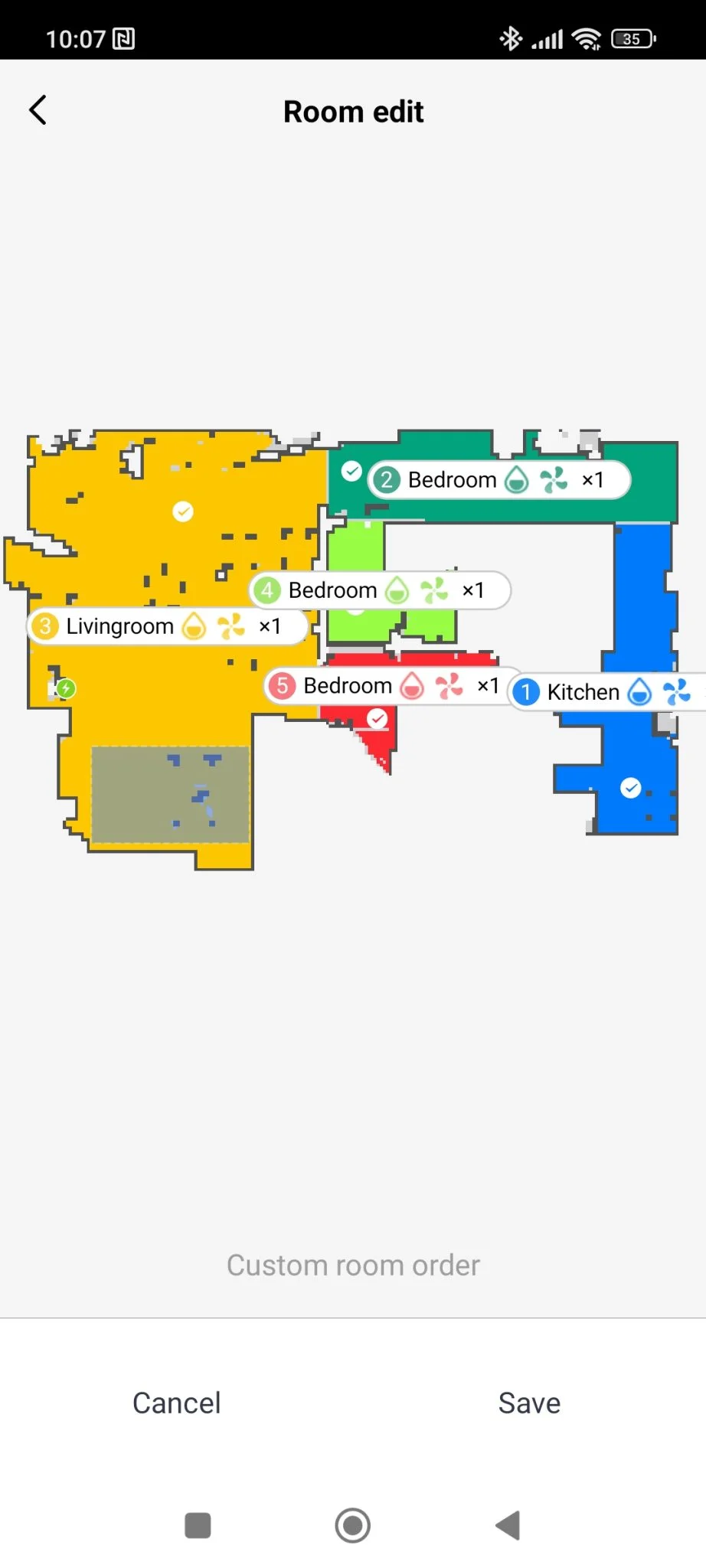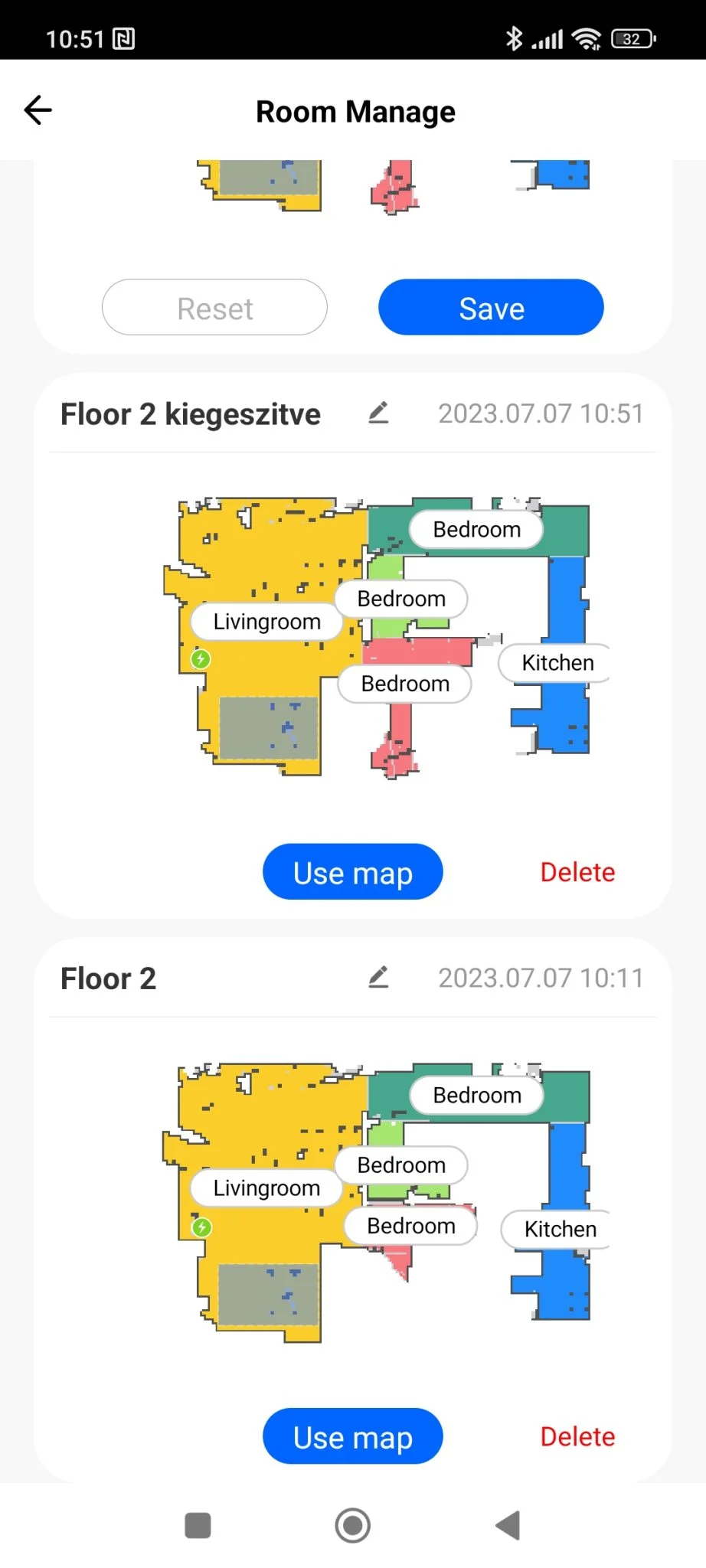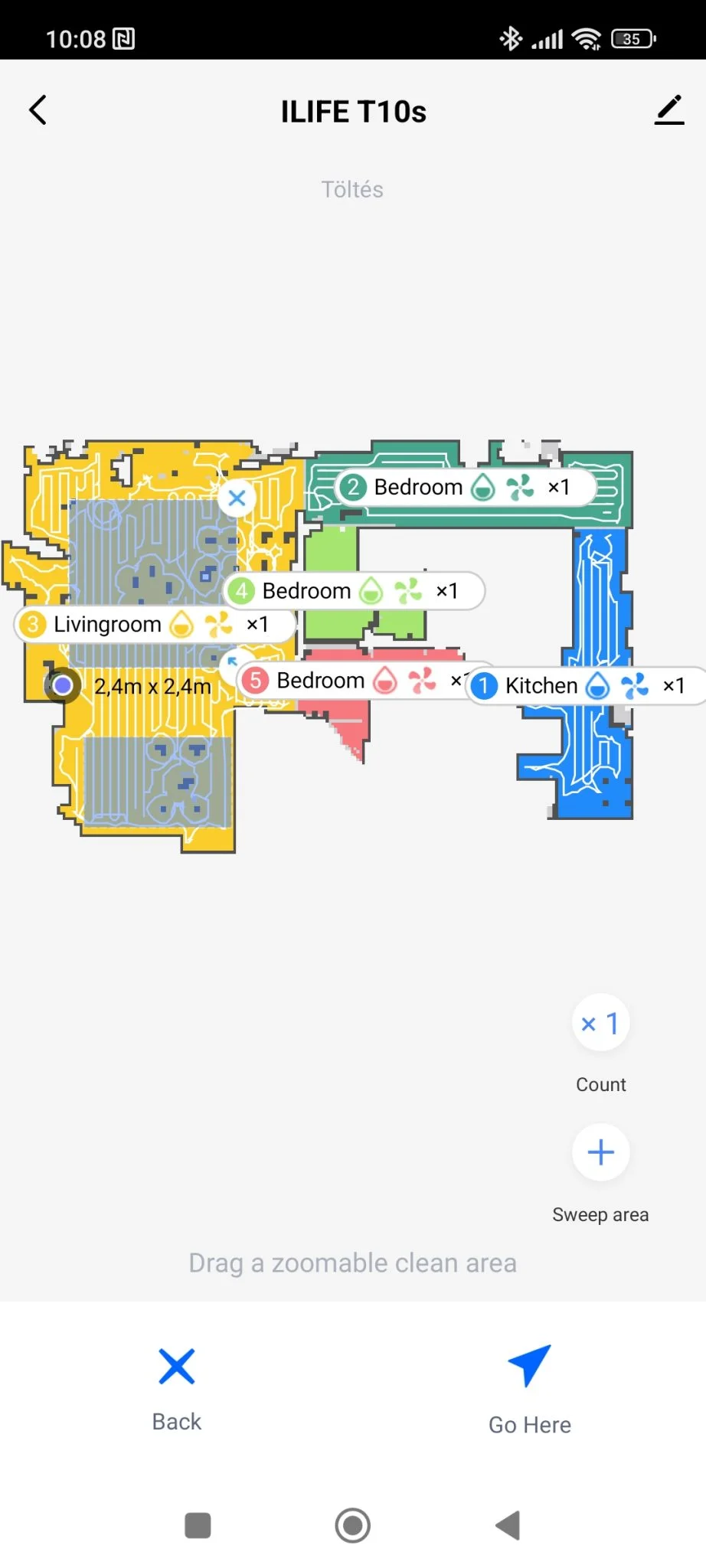 ez is szépen átment rajtuk, ezek szerint az én esetemben mindegy, hogy 18 vagy 20 mm a hasmagasság. A térkép képe eléggé xiaomis, nem rossz, nem érződik gagyinak, de egy 90 fokos forgatási funkciót betehettek volna, mert nem minden lakás alakja álló téglalap. Ami viszont nagyon tetszett, hogy a foltszerű takarításnál kiírja a lerakott terület méretét úgy, hogy jelöli annak élhosszát. Ez sokkal egyértelműbb területmeghatározás, mint az ujjacskátokkal random négyzeteket húzni és kb.-ra elhelyezni a virtuális térképen.