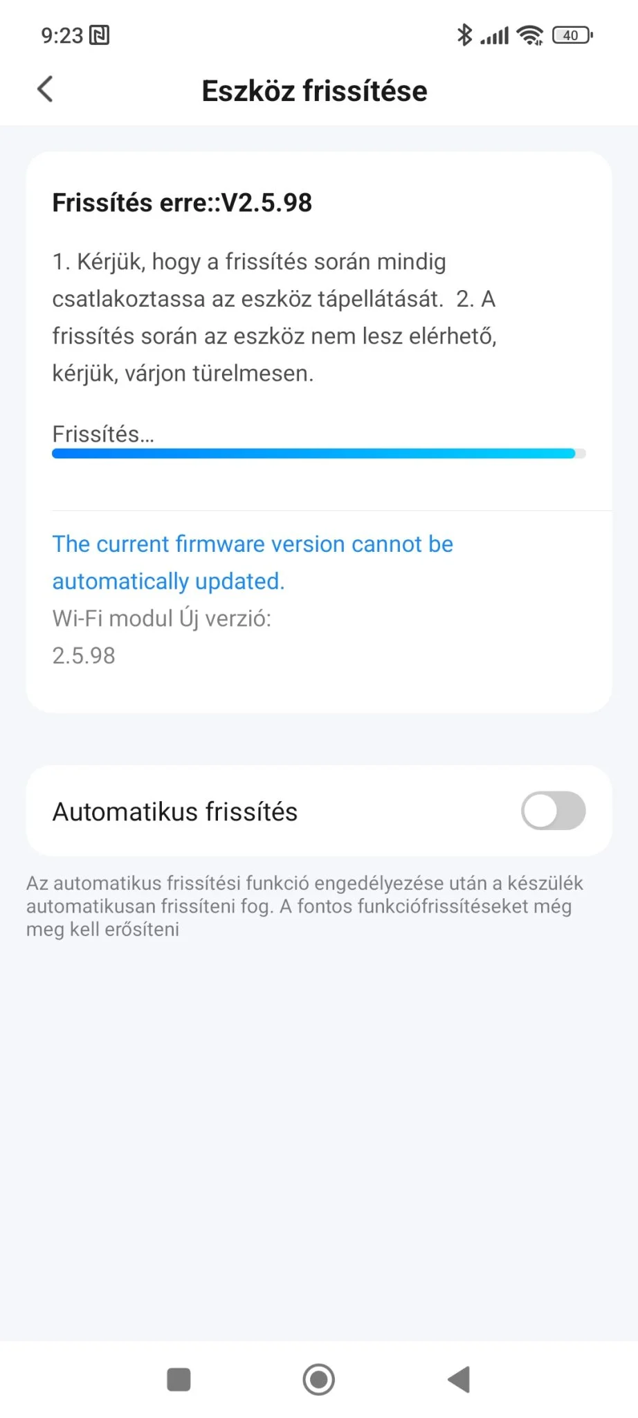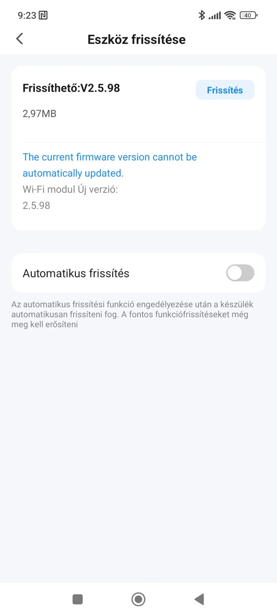 Az app elindítása után egyből jött egy frissítés,