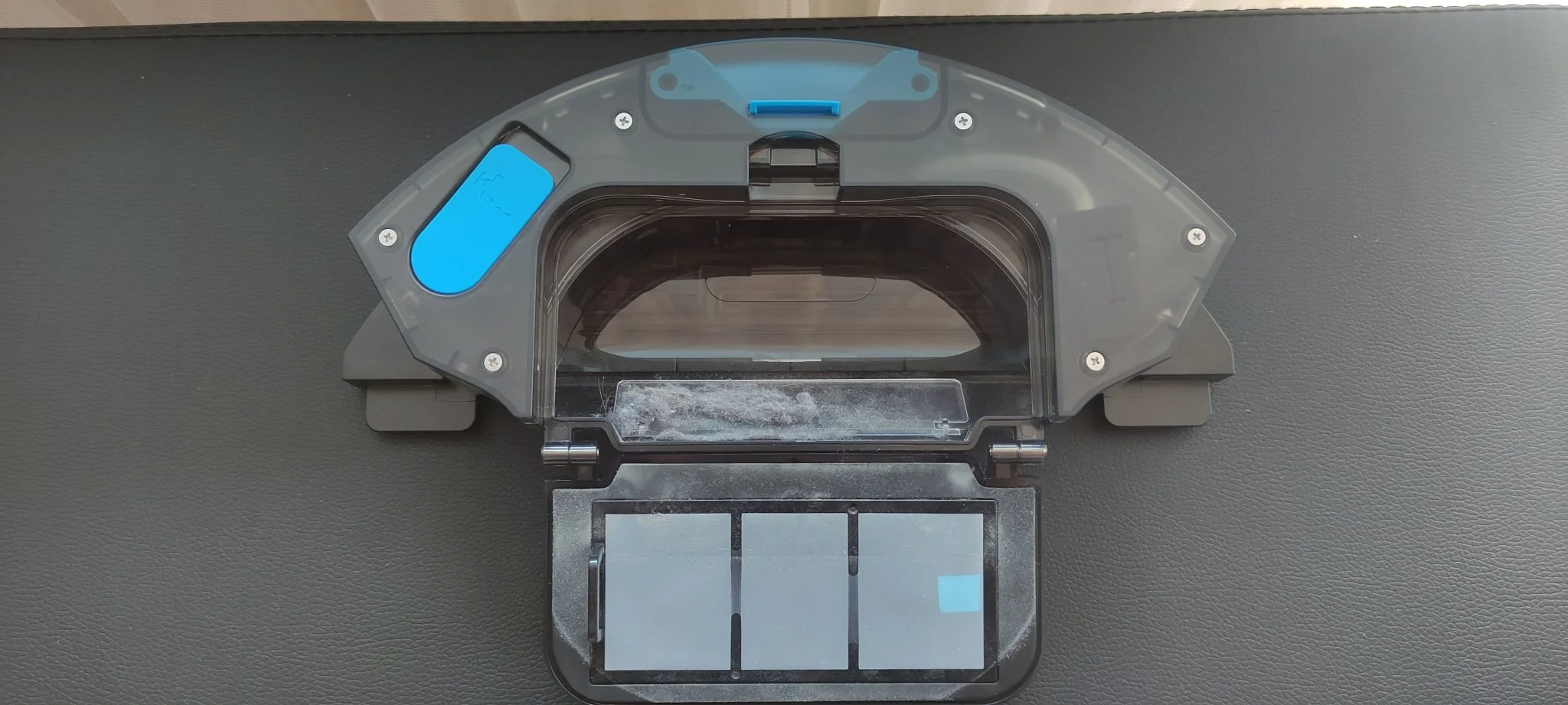 Például a „forbidden edit”, a „mop forbid area”, vagy a „switch disturb” mind kitalálható funkciók, de nem hangzanak túl angolosan. Tudtam továbbá olyan vicces dolgokat csinálni, például mikor bedokkolt a T10S, és elkezdte önmaga kiporszívózását, akkor gyorsan rányomtam a takarításra. Ilyenkor nem az történik, hogy befejezi a kipucolást, majd elmegy takarítani, hanem simán elindul a robot kiszívás közben is, aztán jól van az úgy. Az önürítés sem teljesen tökéletes, a tartályt lezáró műanyag lap elektrosztatikusan feltöltődik, és onnan már nem szívja le a koszt a 20 000 pascal ellenére sem az önürítő állomás. Viszont a lezáró elem miatt nem is hullik a tartályból a kosz mint egyes Xiaomi modelleknél, ami a világ szégyene.