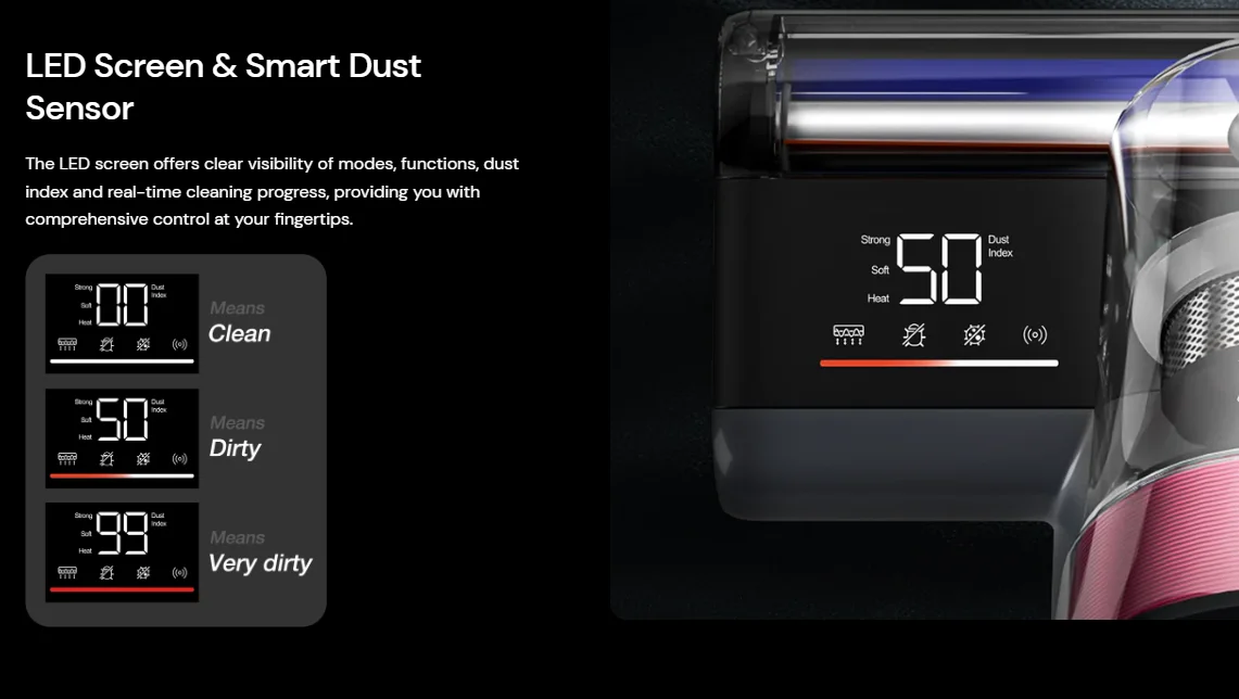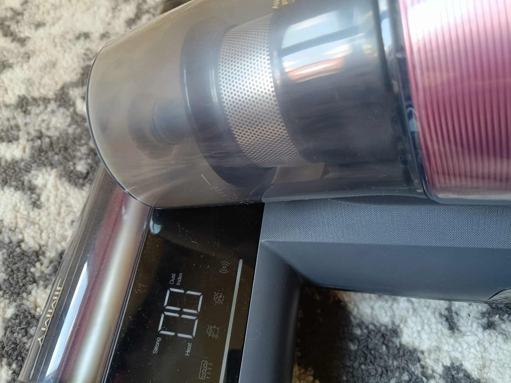 A gépet nagyon lassan húzva a tisztítandó felületen kell használni és közben jól jön a kijelző, ahogy mutatja, hol tart a folyamatban a Jimmy BX8 – így tudható, hogy mikor lehet továbbhaladni.