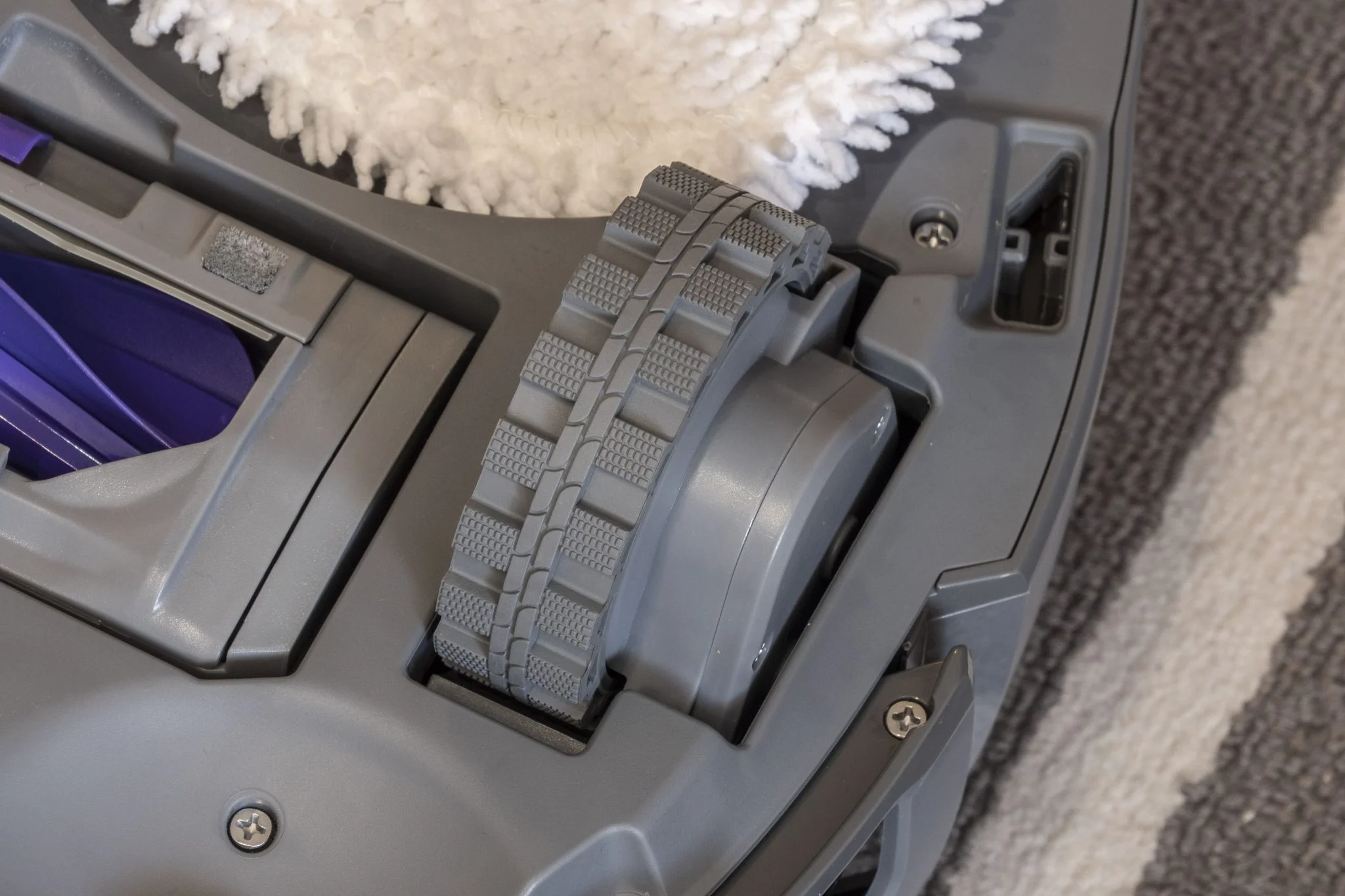 Amit nem lát, azzal nem tud mit kezdeni, ilyen például a szőnyegek sarka és azok magassága. Simán be tud alá akadni a felmosókorong, feltúrni a szőnyeget és ezzel csapdába ejteni saját magát, illetve akár le is tudja rúgni a tappancsait. Ezt az első komolyabb takarításkor sikerült összehoznia, nagy szerencse, hogy többet nem ismétlődött. Tipp: ragasszátok le a szőnyegeket kétoldalúval és letudva a gond. A másik probléma a shaggy szőnyegekkel szokott lenni, ezek hosszú szálakat tartalmazó padlóra valók egyrészt borzalmasan nehéz terepet biztosítanak a robotporszívóknak, másrészt remekül fel tudnak tekeredni szinte mindenre, ami egy robot alján található.