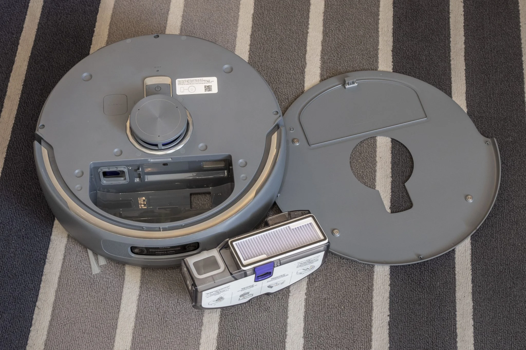 de azért azt is érezem, hogy nem exponenciálisan jobbak az anyagok, mint az olcsóbb konkurensek esetében. A robotporszívó felülete érdes, és nem fényes, ujjlenyomatgyűjtő „”gagyiműanyag”, míg a dokkoló egy masszív gránittömb, amin mindenféle ajtókat lehet kinyitni. Nagyon okos megoldás, hogy a fedelek mágnesesen és nem műanyag bolhákkal vagy fülekkel kapaszkodnak az alatta lévő felületekre, így nem lehet őket eltörni és levenni is egyszerű. Prémium, időtálló megoldás. Ez az okos hozzállás érhető tetten a kellékanyagok esetében is, például az oldalkeféket színekkel jelölték, tehát nem lehet eltéveszteni, minek hova kell kerülnie.