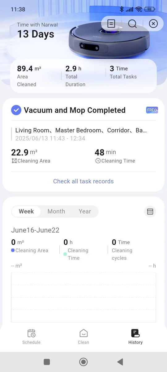 Szerencsére a gyakorlat nem ezt mutatja, a RendeljKínait szerkesztőségében 2016 óta vannak robotporszívók és egyrészt évekig jók az akkuk – van ahol 5 éve megy ugyanaz a robot -, másrészt meg ezek szervízben cserélhetők, de ettől még keveslem a ciklusszámot. A küszöbmászó képességet élőben is teszteltem, tényleg átjutott 20 mm-es részeken, hiszen tele van burkolatválasztó elemmel a lakásunk és gond nélkül vette az akadályokat. Ez persze csak a jéghegy csúcsa, az app tartalmazza az igazi finomságokat, lássuk, mit nyújt a program.