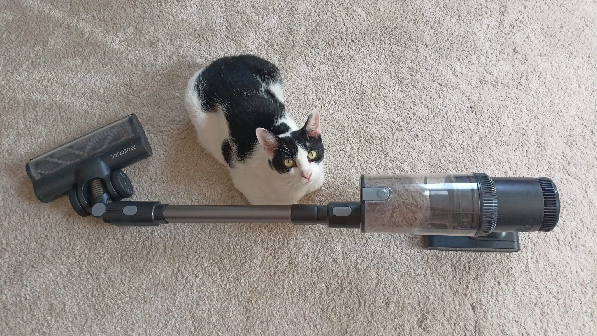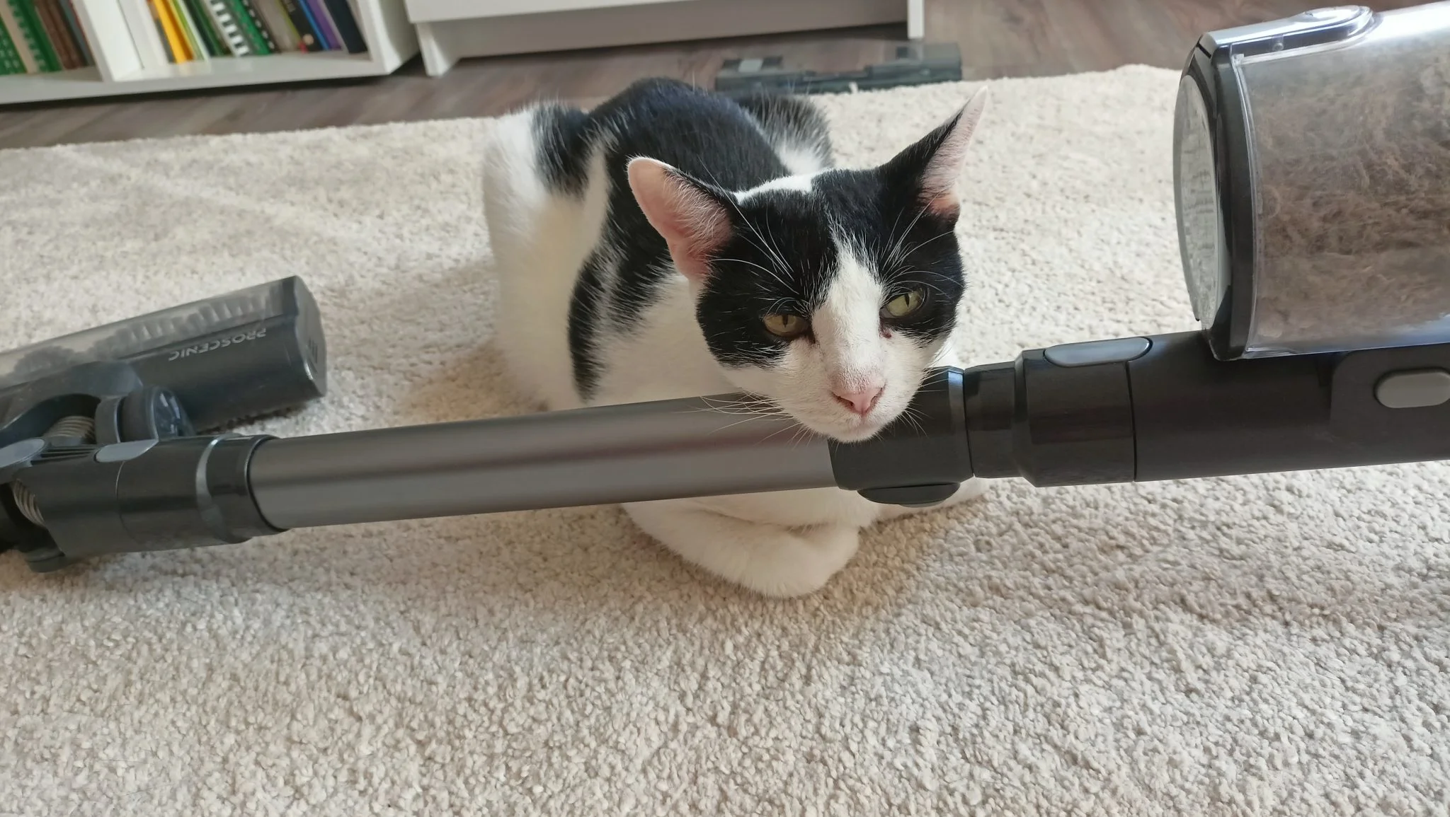 Ezután átvittem a gépet édesanyámhoz, ahol „hagyományos”, rövid szőrű szőnyeg található, azon pedig már gond nélkül dolgozott. Általában a legtöbb helyen könnyen tudtam vele manőverezni, hiszen ügyesen lehet vele navigálni a bútorok között, illetve alatt. Amikor a fejem fölött használtam pókhálók felszívására, akkor azt tapasztaltam, hogy az alig 2,5 kilogramm tömegű gép sokkal kevésbé tudta elfárasztani a karomat, mint ha a hagyományos, vezetékes porszívómat használtam volna.