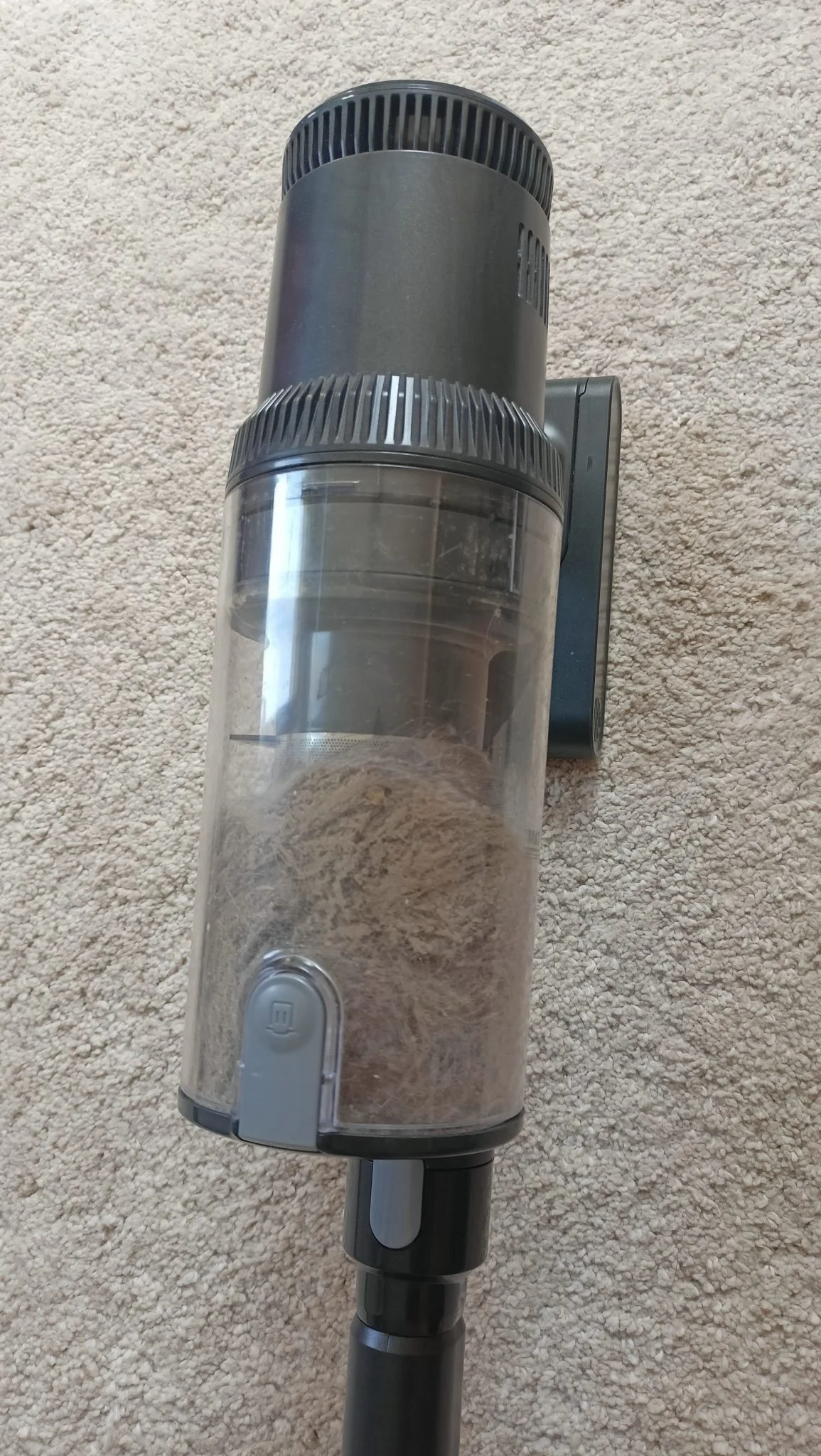A motoros fejen található LED világítás egész szépen megvilágította az előtte lévő területet, így kevésbé világos napszakokban és sötétebb sarkokban egyaránt segített abban, hogy lássam, mit is csinálok. A porszívó kiürítéséhez egyszerűen a szemetes fölé kell tartani a testet és megnyomni a portartály alján található gombot. Az apró szemű törmelék egyszerűen kihullik belőle, de sajnos bele kell nyúlni, hogy eltávolítsuk a kisállatszőrt, a pókhálókat és a porcicákat, tehát a nagyobb méretű szennyeződéseket. Nem szabad elfelejteni, hogy a szűrőegységet időnként meg kell tisztítani. Ehhez meg kell nyomni a portartály mindkét oldalán található kioldógombokat és ezzel eltávolítani a tartályt. A szivacs és a HEPA szűrők hideg vízzel moshatók, a használati útmutató pedig részletes utasításokat ad az egész egység szét- és összeszereléséhez.