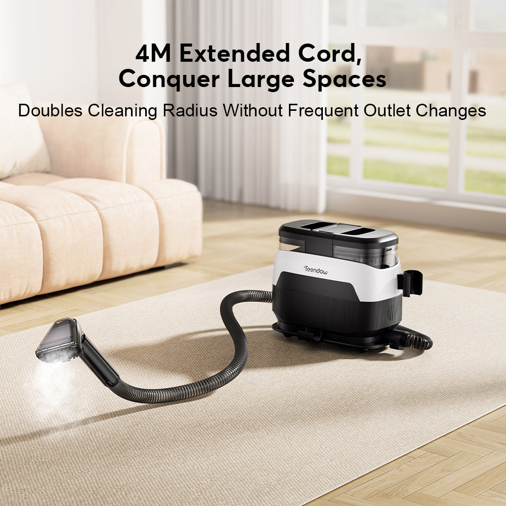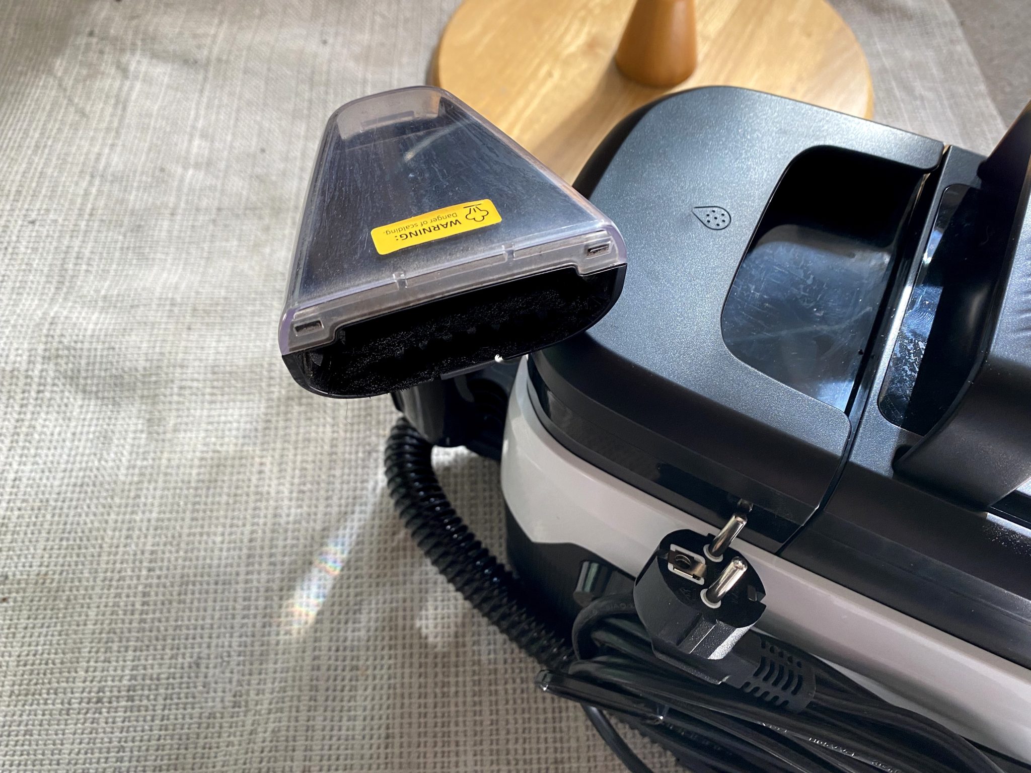 Egy biztos: a tesztelés során meglepően és kellően erősnek bizonyult ahhoz, hogy a kárpitba beivódott kosz őrülten meneküljön. A 12 000 Pa mellett a gép másik „szuperereje” a gőz, aminek a hőmérséklete 100-110 Celsius-fok feletti és a kárpittisztítónak mindössze 10 másodpercre van szüksége a felfűtéshez, a folyamatos gőzkibocsátása pedig 35 milliliter percenként. Ezek a számok elsőre szépnek és jónak hangzanak, de vajon miért ilyen nagy szám ez a funkció? Azért, mert a legtöbb kárpittisztító semmi mást nem használ, csak vizet, viszont a forró vízpára eredményesebb.