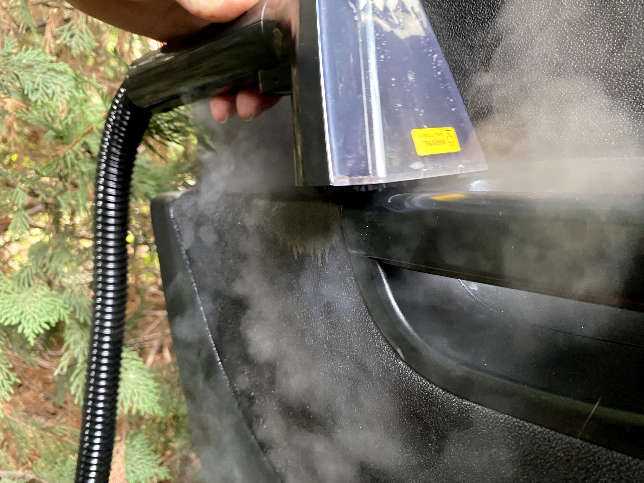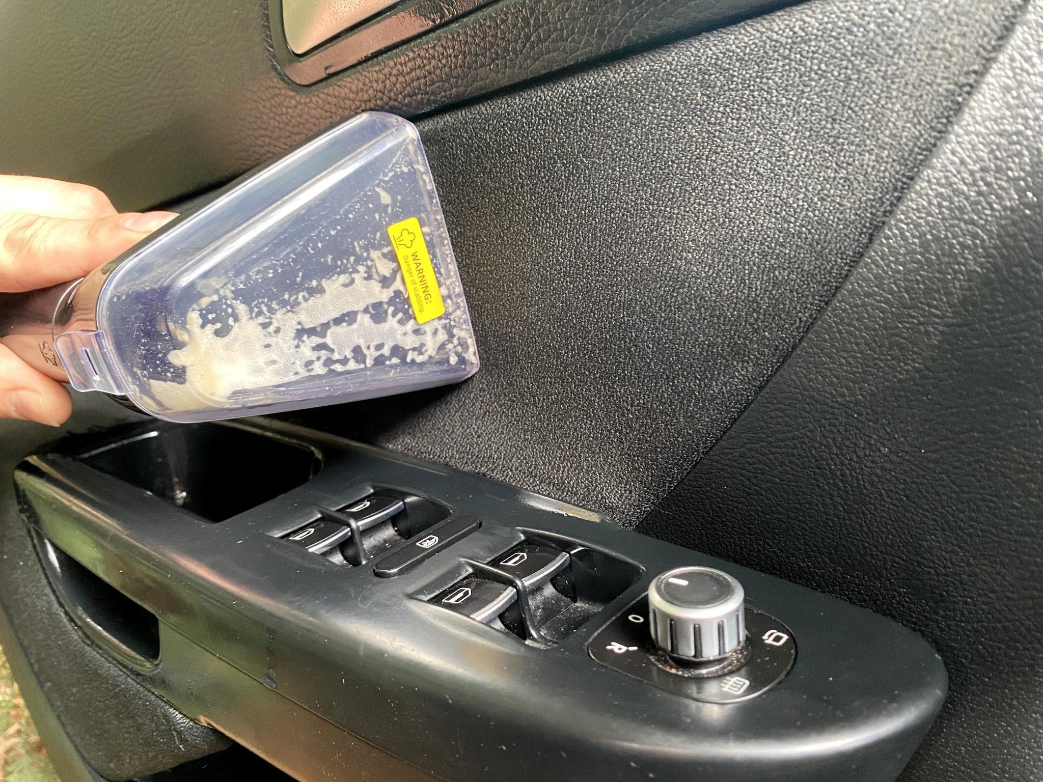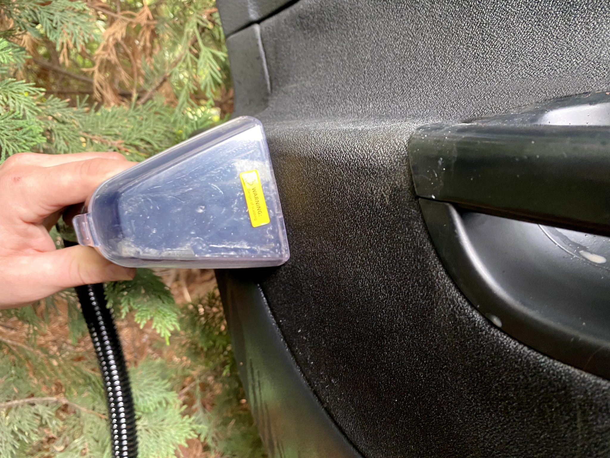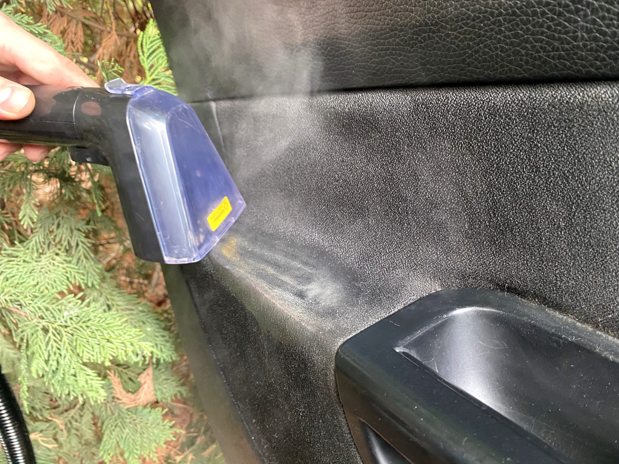 – klasszikus 99,99%-át – tehát kisgyermekes, háziállatos vagy allergiás családban aranyat ér. A lakásban most kivételesen nem volt olyan felület, ami rászorult volna egy kárpittisztító bevetésére, ellenben a párom autójával. Első körben a klasszikus vasalókefével/gőzölőkefével kezdtünk, pontosabban ezzel estünk neki az autó vezető oldali ajtó textilburkolatának, amiből több, mint 700 000 km dzsuváját szerettük volna kiszedni. Leginkább a könyöklő részen volt a fókusz, a gombokhoz közel, ahol legtöbbször hozzáér és tapizza az ember.