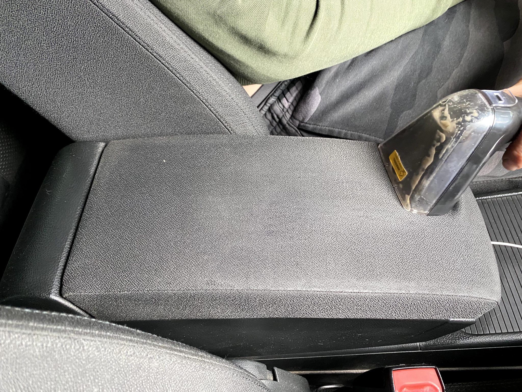 Végül a két első ülés közötti könyöklő lett a legeredményesebb, ugyanezzel a fejjel és eljárással, de a fejtámlák is kaptak egy pucolást, csak azokat egyszerűbb volt az autóból kiszedve megcsinálni. A könyöklőn látványos foltok ugyan nem voltak, viszont más részekhez viszonyítva a kárpit már néhány árnyalattal sötétebb volt a benne lévő dzsuva miatt, de