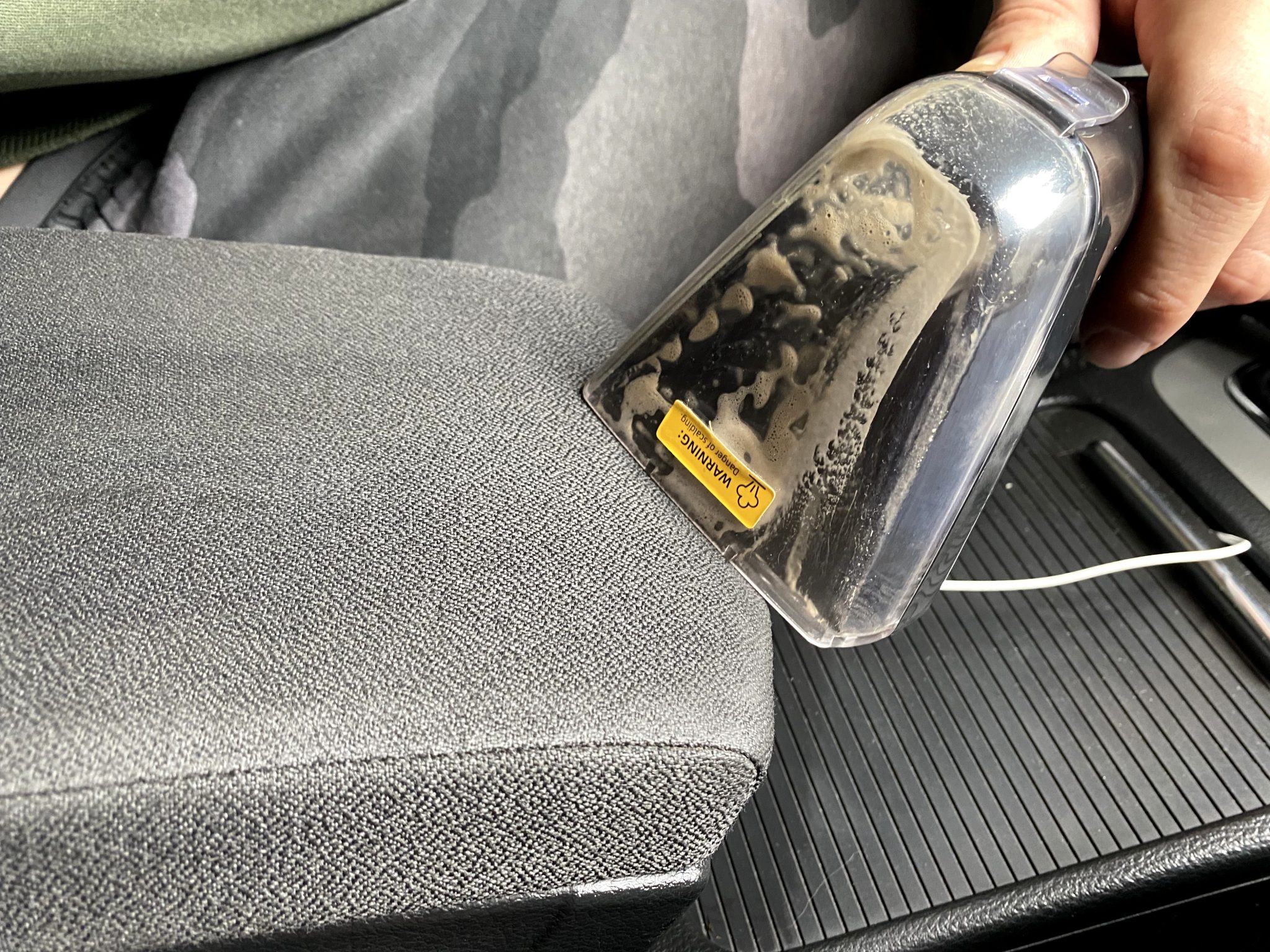Korábban írtam a gombok működésénél arról, hogy a gőzölés és a porszívózás funkciók működnek egyszerre, így amint fellazult a mocsok, azzal a lendülettel el is szívta azt a C6 Max. Ugyanezt a fejet, ugyanezzel a gőzölős, egyszerre porszívózós móddal használtuk az autó üléseire is, viszont vastag kárpiton bátrabban lehet használni. Csak 1-2 kisebb folt volt, amik miatt alapvetően nem feltétlenül ragadtam volna kárpittisztítót, de ha egyszer már nekiesik az ember akkor mindent megcsinál.