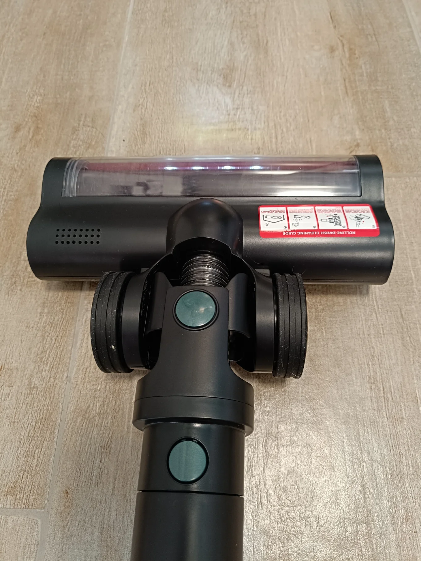 A motoros kefe könnyen szedte fel a koszt, és remekül teljesített minden felületen. Nem nyűgölődött még a shaggy szőnyegeken sem, és a felületváltásoknál is könnyedén siklott át egyikről a másikra. Az elektromos kefe elején található egy LED-lámpa, aminek az lenne a célja, hogy észrevegyük a padlón a szennyeződéseket, de jelen esetben nem sok értelme van ennek az egyébként igencsak hasznos funkciónak. A fénye nem zöld és ráadásul eléggé gyengére is sikeredett. Ha az lenne a fétisem, hogy teljes sötétségben porszívózok, akkor lehetne jelentősége, de ebben az esetben teljesen feleslegesen építették be a készülékbe. A 1,5cmx1,5cm nagyságú, sunyin megbúvó LEGO-darabot sem vettem észre a világítással, a motoros kefe pedig szépen görgette magán, amíg ki nem szedtem onnan. A rátekeredett hajszálaimtól ollóval simán megszabadítottam.