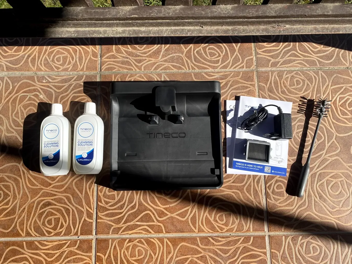 A porszívó egy kevésbé szemrevaló, barna színű kartondobozban érkezik, nem túl sok kiegészítővel együtt. Alapvetően minden fontosat megkapsz hozzá, de az S9-hez jóval több kellékanyagot mellékelt a gyártó. Az i5-höz természetesen tartozik egy dokkolóállomás, amivel kapcsolatban nagyon tetszett, hogy a töltőkábelnek kihagytak egy kis mélyedést, így egyfelől nincs szem előtt, másfelől nem fog egyhamar megtörni a folyamatosan ránehezedő súly miatt. Találsz a dobozban egy HEPA-szűrőt, ami a későbbiekben lesz hasznos, mert egy ugyanilyen már a porszívó belsejében lakik, a hengerkefével együtt. Egy tisztítókefe szintén a pakk része, egy vastag használati utasítással együtt és 2 flakon, 500 milliliteres tisztítószerrel, amiknek az illata isteni. Egyetlen kupaknyi kell minden egyes teli tank tiszta vízhez és más kemikáliát nem ajánlott helyette használni, ugyanis az rövidítheti az i5 Stretch élettartamát.