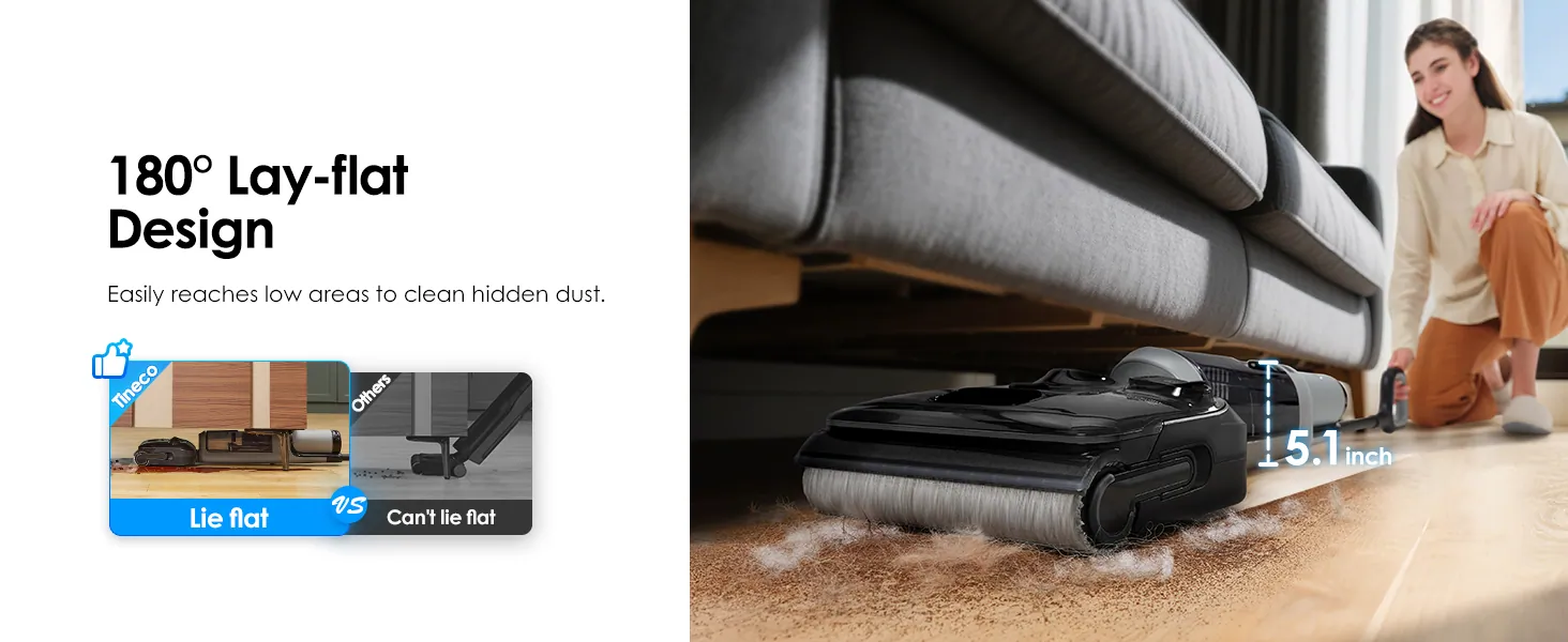 így az alacsony lábakon álló bútorok alá nagy eséllyel befér, ahová sok konkurens nem. A nemrégiben letesztelt Proscenic F10 Ultra használatánál figyelni kellett, hogy 140 foknál jobban ne döntsem meg, mert ilyenkor félő, hogy a koszos víz tartályából valami szivárogni kezd, de a Tineco porszívójánál egyszer sem volt ilyen gond.