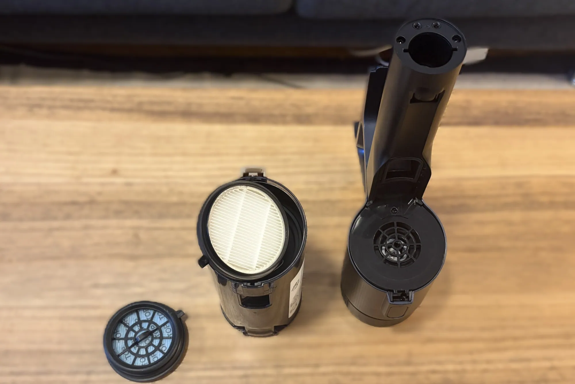 Gyakorlatilag minden egy pillanat alatt tisztítható vagy cserélhető. Az akkumulátor például levehető, így nem kell az egész porszívót a konnektor közelébe hurcolni töltéskor. A hengeres padlókeféhez egy külön tisztítóeszközt is mellékeltek, amellyel egyetlen mozdulattal eltávolítható a rátekeredett haj – vagdosás és tépkedés nélkül. Minden elem egyetlen klikkel szétszedhető, a szűrő könnyen tisztítható, a portartály pedig gyorsan és higiénikusan üríthető. Nekem kifejezetten bejött ez a fajta gördülékenység.