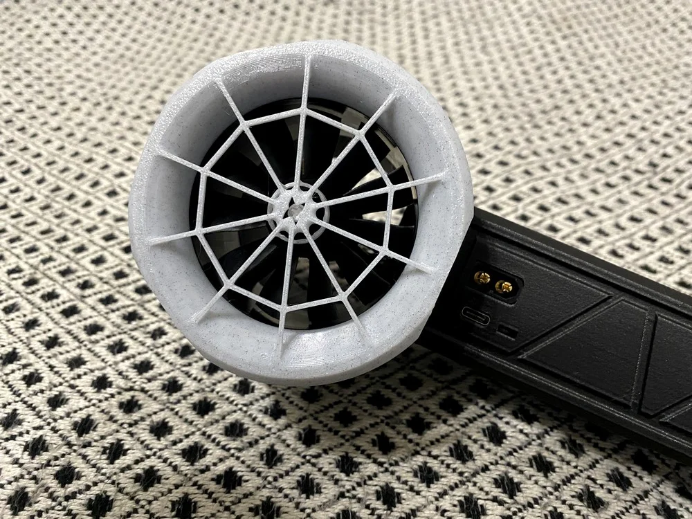 A burkolat egy 64 milliméteres, kefementes motort rejt, ami erőteljes légáramot ígér és jelen esetben kivételesen nem túlzott a gyártó. Ehhez 11 lapát társul és 10 centiméteres távolságból a fújóerő akár 1400 gramm elfújására is képes.