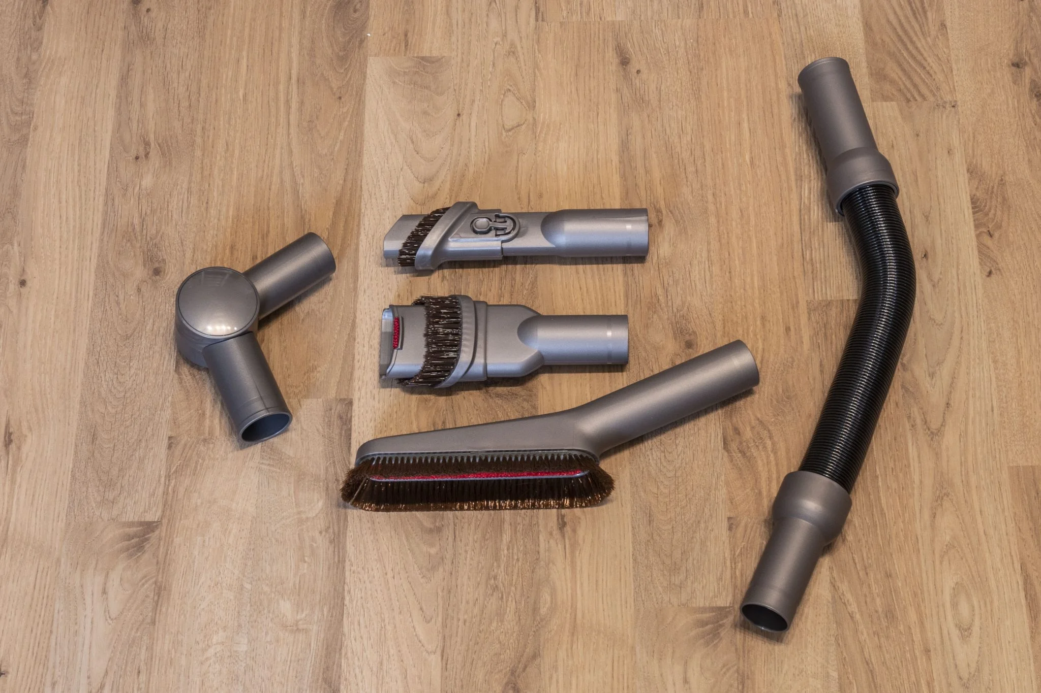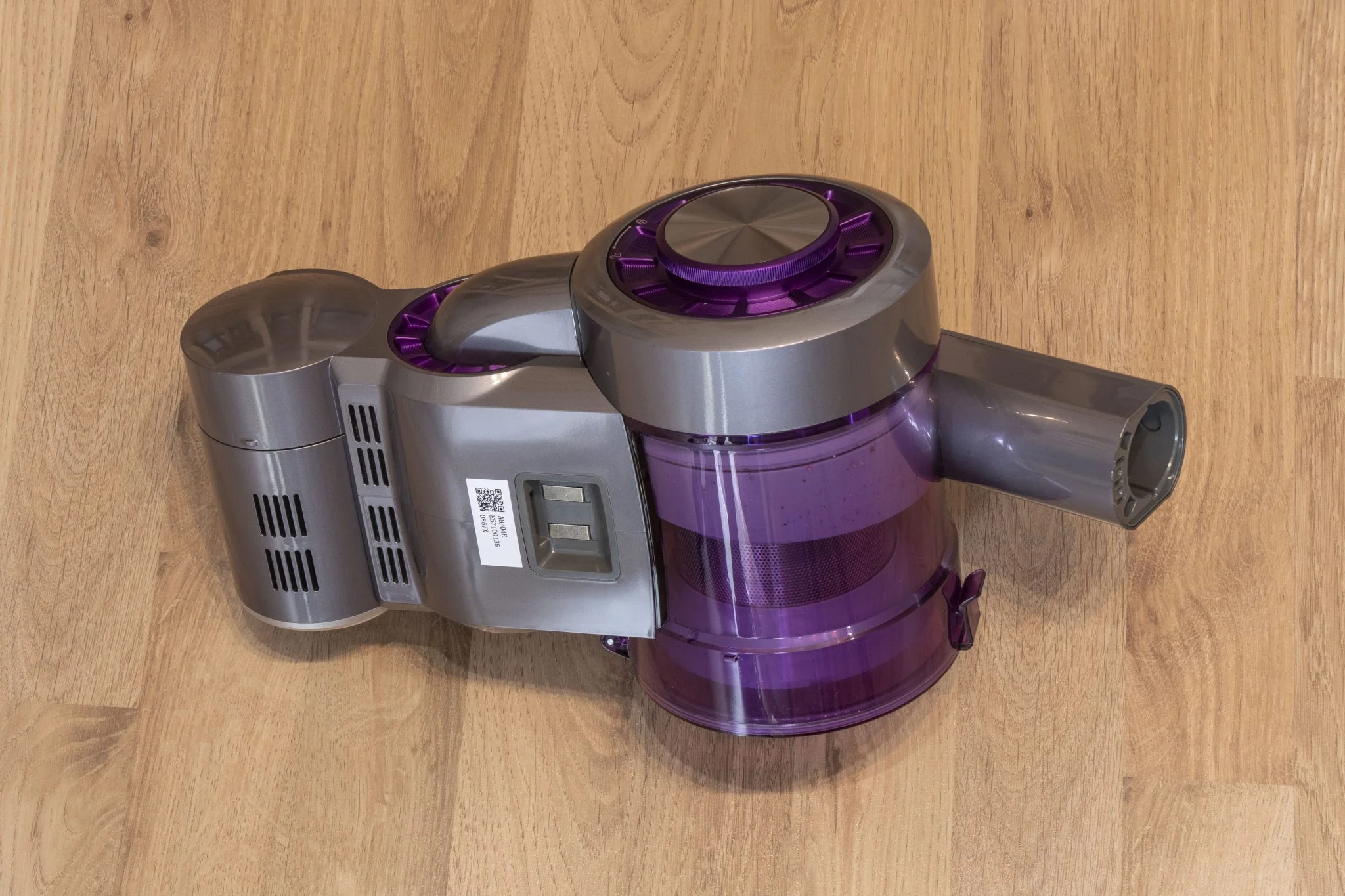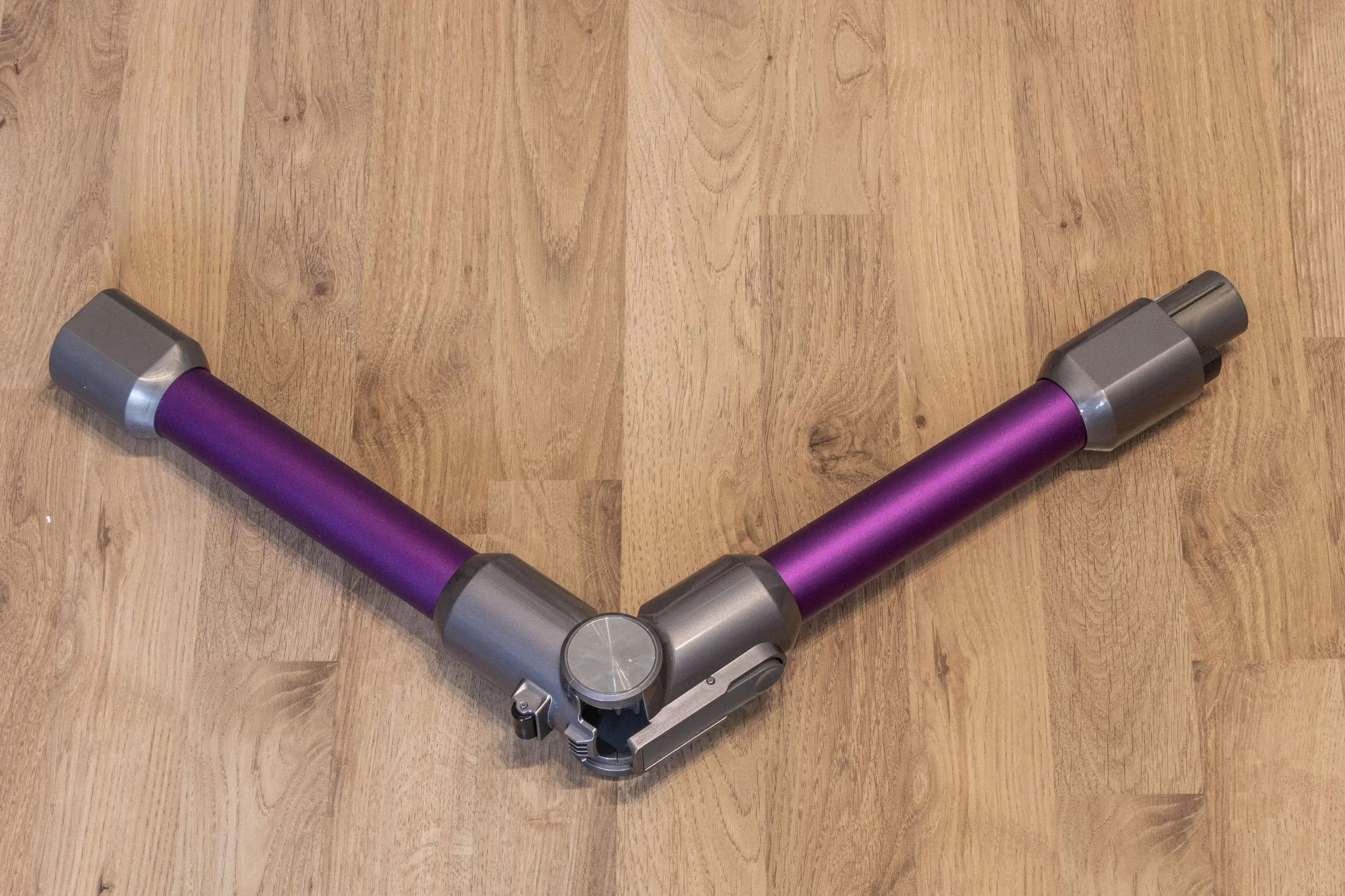 A középen összecsukható csőben bevallom, eleinte nem hittem. Próbáltam már ilyesmit a Puppyoo T10 Mix kapcán, és nagyon nem működött jól élőben. Össze-vissza nyeklett nyaklott a fej, állandóan elhúzta az ember kezét a szívóteljesítmény miatt, az egész iszonyatosan gagyi érzetet keltett. A JV85 Pro-nak viszont más a kialakítása, sokkal masszívabb a cső, és csak oldani kell kézzel, ha újra zárni akarjátok, elég, ha megrántjátok felfele a porszívót. Ez a gyakorlatban is tökéletesen működik, sokkal könnyebb vele benyúlni az ágy vagy a bútorok alá, nem kell leguggolnotok, ha el akartok érni valamit a sarokban, összességében nagyon kényelmes. Egy hátránya van, hogy csak lefele lehet hajlítani, a felfele irányra van egy külön műanyag könyök.