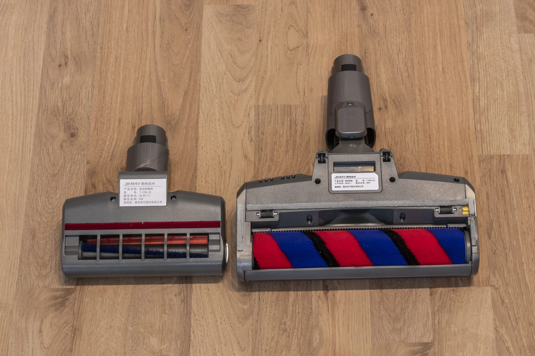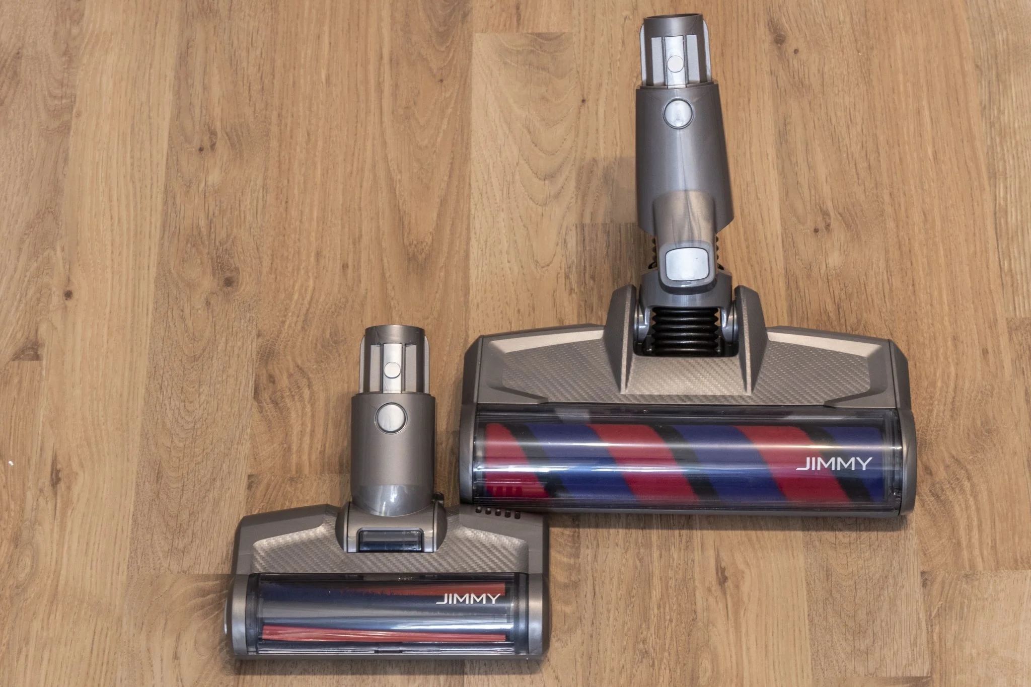 Ezt már nem találtam annyira hasznosnak, egyrészt nem reteszes a megoldás, mint a csőnél, másrészt meg ez elvileg a szekrény tetején lévő kosz eltűntetéséhez kell, viszont akkor a berendezést a levegőben kell tartanotok. Nem mondom, hogy lehetetlen, de közel sem olyan kényelmes, mint a padlón tologatni a kütyüt. A flexibilis toldalékról korábban sokat áradoztam, autótakarításhoz szoktam használni és az egyik kedvencem. A két motoros fej megegyezik az előző Jimmy modellekkel, a kisebbik az házipor-atka eltávolító, a nagyobbik pedig hagyományos takarításhoz való. A szőnyegeket is remekül kitisztítja, viszont a Jimmy JV85 Pro nem ismeri a Roborock H6 féle automatikus teljesítményemelést, nektek kell azt állítgatnotok, amit 3 fokozatban tehettek meg. Abban mondjuk nem tudom mi a logika, hogy bekapcsolás után a középsőn kezd, és nem a legalsón.