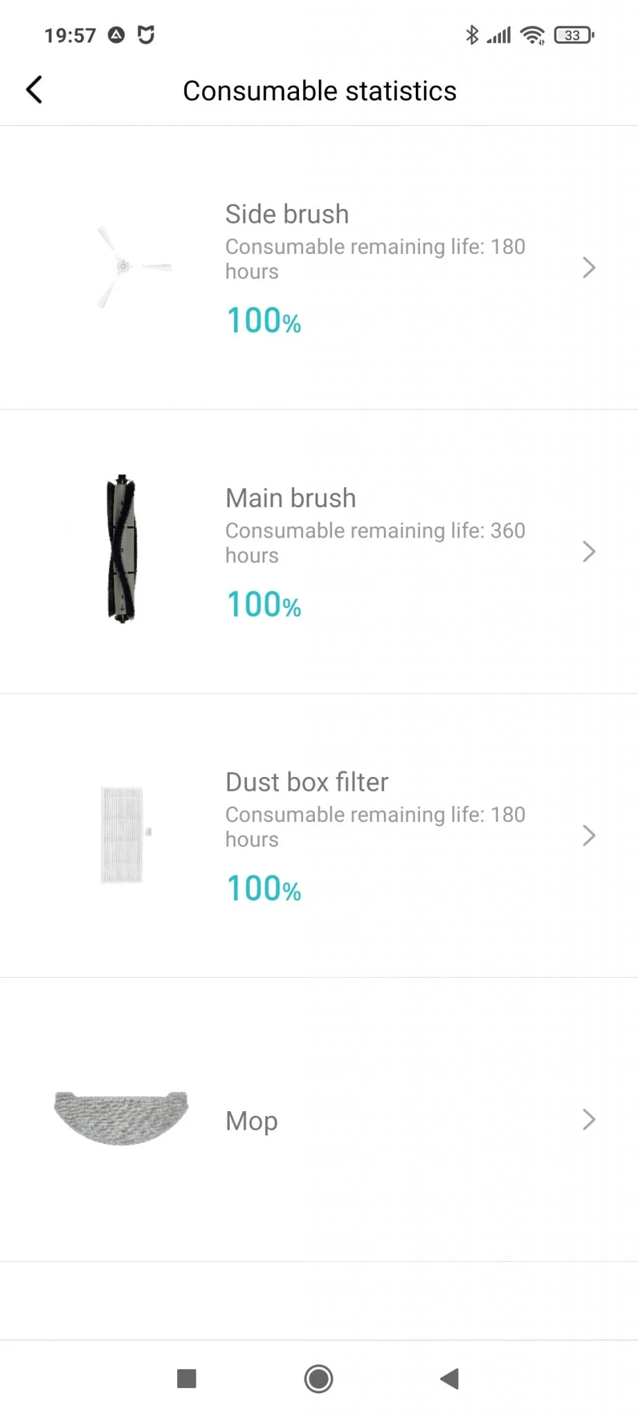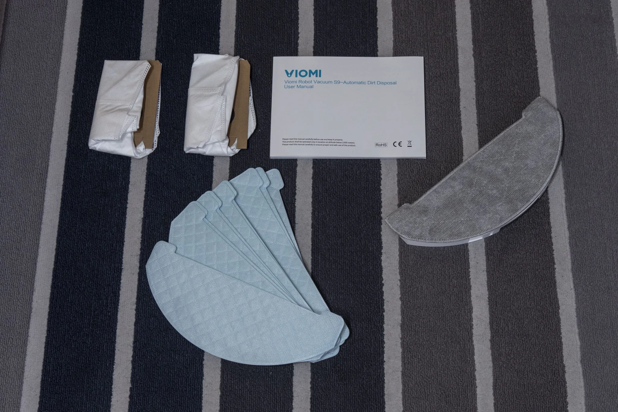 Egyből adja magát, hogy de mi lesz a kellékanyagokkal? A dobozban 3 db porzsák, 1 db mosható és kb. 10 db eldobható feltörlőrongy van a platnival egyetemben, illetve egy pót oldalkefét is mellékeltek. Ez elég sok, és mivel még egy teljesen új termékről van szó, nincsenek is hozzá kellékanyagok, azonban a cég ígérete szerint hamarosan lesznek. Annyi kritikát azért megfogalmaznék, hogy az oldalkefe a hagyományos, és nem a szilikonos megoldás, szerintem 2 kilóért illett volna az utóbbit mellékelni. Természetesen mint minden Xiaomi égisze alá tartozó eszköz, ez is a Mi Home appal működtethető, vágjunk is bele a próbálgatásba.
