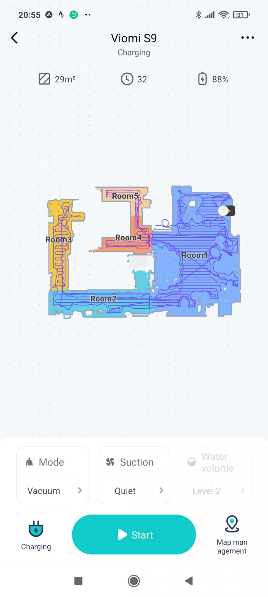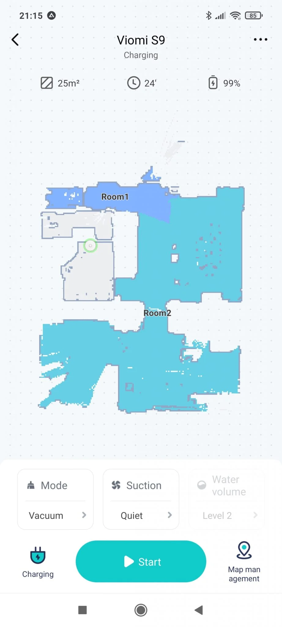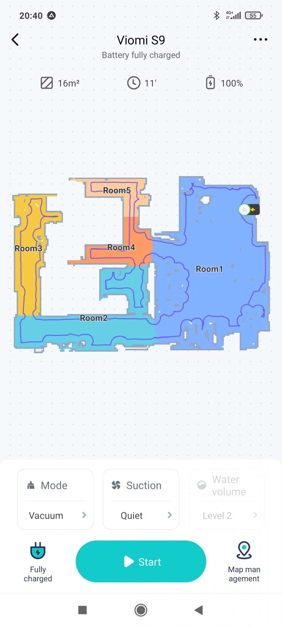 Ennél már csak egyetlen modell tud többet, a Robocok S6 MaxV, ott ugyanis intelligens, tárgyfelismerő funkciók is vannak, ezt kell az önürítéssel szembeállítani. Szerintem ízlés dolga melyik a hasznosabb, bár a MaxV-t egy krumplival át tudtam verni, szóval a technikának vannak még korlátai. Szerencsére a Viomi S9 minden mást remekül csinál, jól takarít, hengerkefével kikapja a cuccokat a szőnyegekből is, okosan térképez, mindent agyon lehet paraméterezni, a térképet szobákra darabolni, szóval a szokásos full extrás csúcsporszívó funkciókat használni.