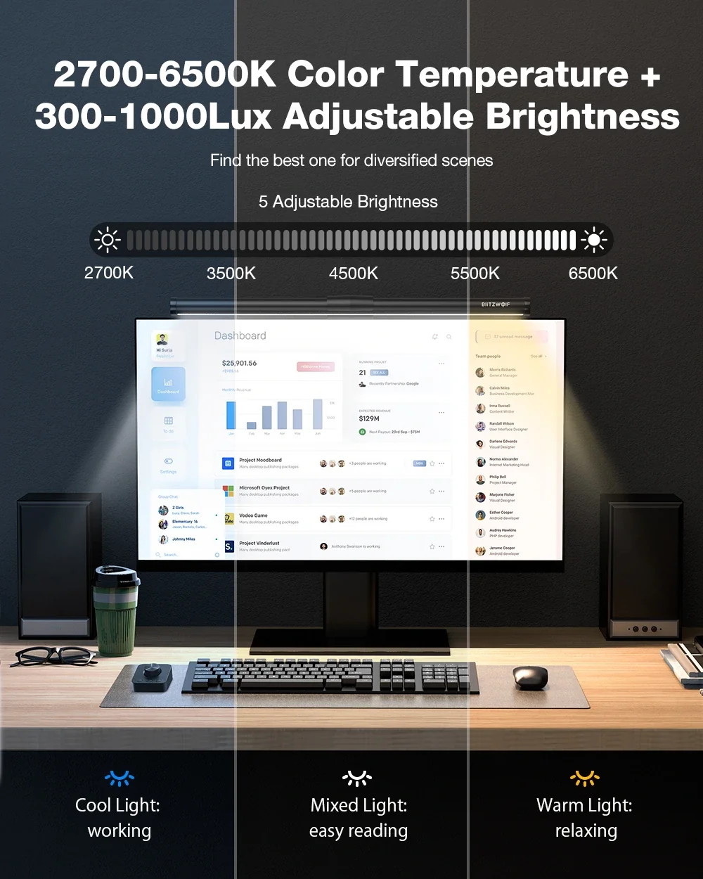 Természetesen érdemes nagyjából párhuzamosan beállítani a monitorodhoz képest, mert más helyzetekben vakító lehet és a megjelenítőd fényét sem fogja értékelhető módon tompítani. A monitorlámpa megérintésével vagy a távirányító használatával egyaránt kedvedre váltogathatod a színhőmérsékletet és a fényerőt, előbbit 2700-6500 K, utóbbit pedig 300-1000 Lux között.
