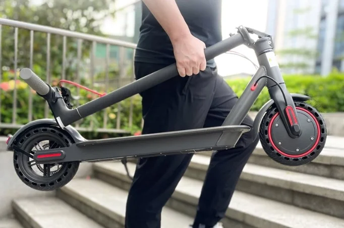 Ez egy döntő faktor lesz azoknak, akik a helyi tömegközlekedésre is fel szeretnének szállni vele, vagy pedig lift nélküli házban laknak. Egy kézzel is játszi könnyedséggel elbírtam, de még barátnőm is simán felhozta a másodikra, aki nincs 50 kilogramm. Vagyis, ha sokat akarjátok összecsukva hurcibálni, ahhoz ideális a tömege. A lecsukómechanika gyorsoldós, biztonsági záras, a kialakítás kísértetiesen hasonlít a Xiaomi modelljeinél alkalmazottra.