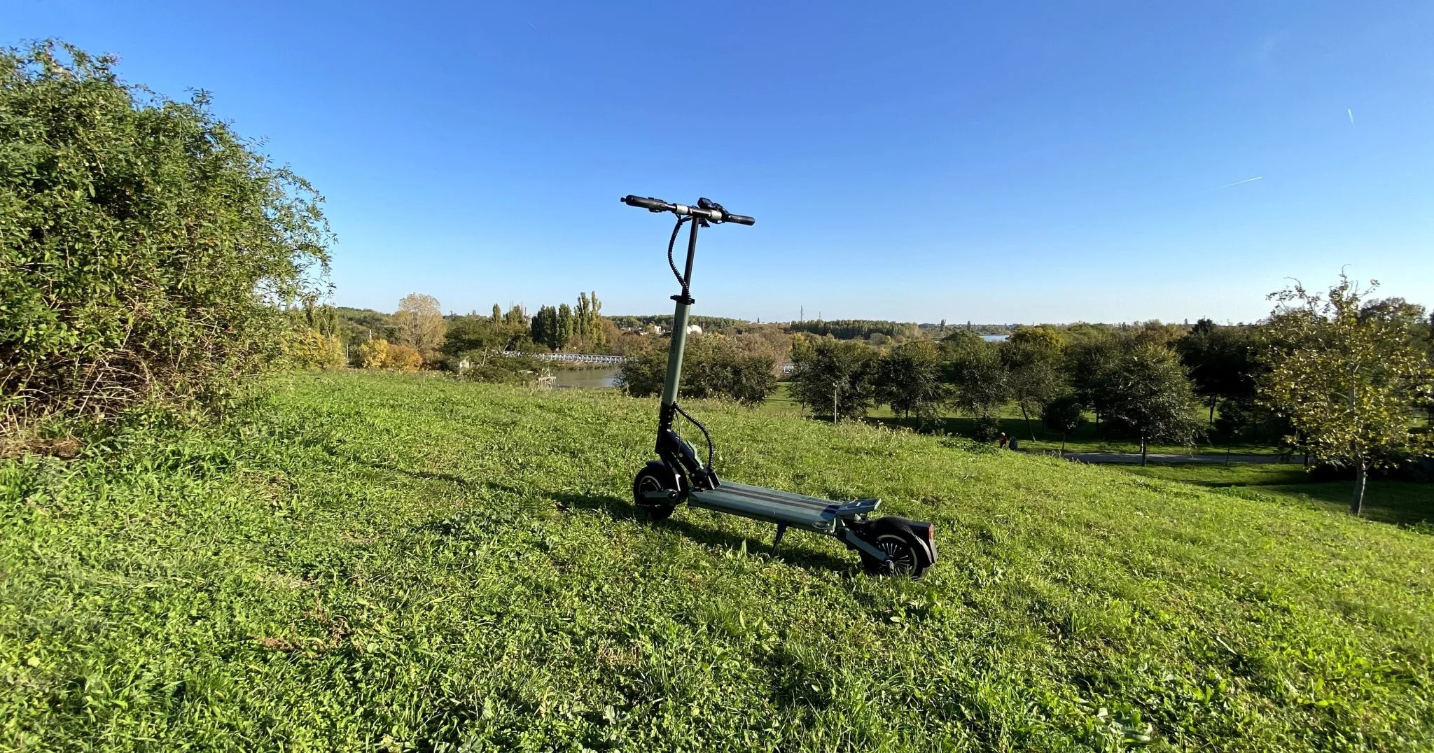 A tesztalany egy meglepően kicsi, legalábbis elektromos rollerekhez mérten kicsi dobozban érkezett, ráadásul összehajtva, így egy ember is könnyedén ki tudja emelni a csomagolásából. A roller érdekessége, hogy a kormány lehajtható mindkét oldalon, úgyhogy pillanatok alatt össze tudod csukni. Picit fentebb már említettem, hogy 22,4 kilogramm a saját tömege, tehát teljesen élhető a hétköznapok során. Egyszerűen szállíthatod vonaton, buszon és a kocsiban sem kell neki sok helyet szorítanod.