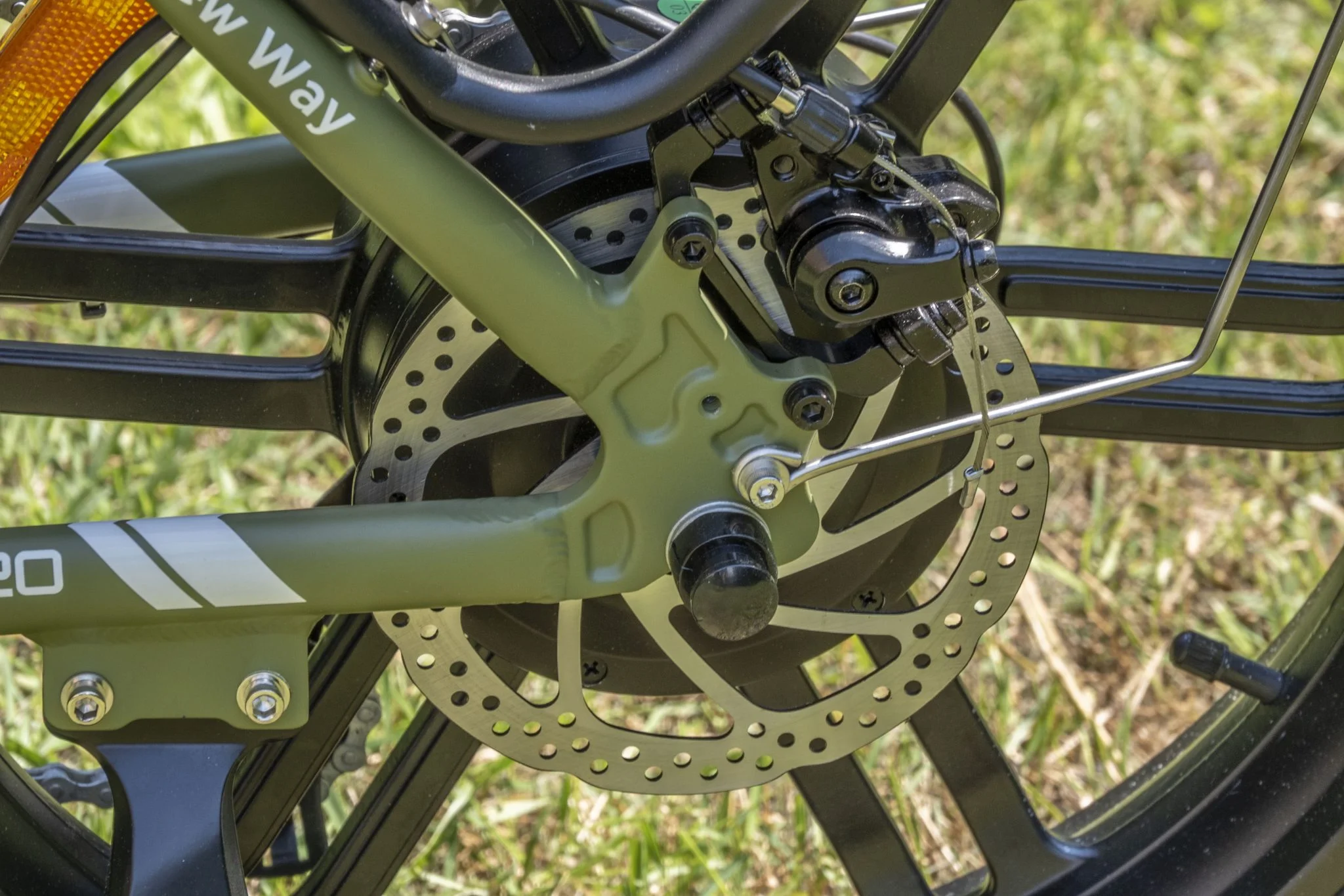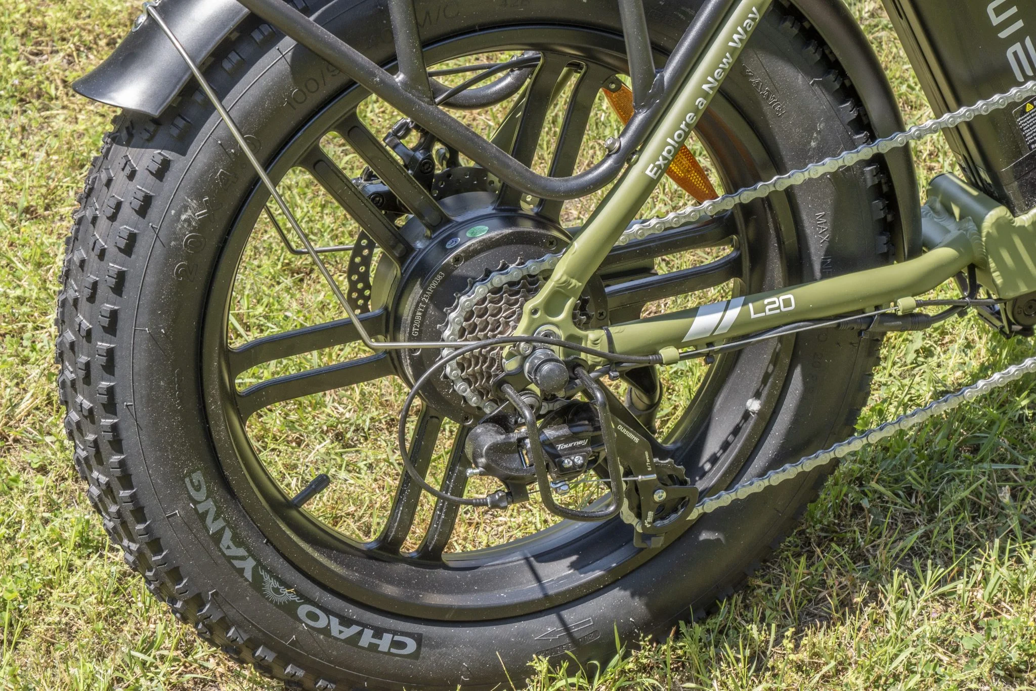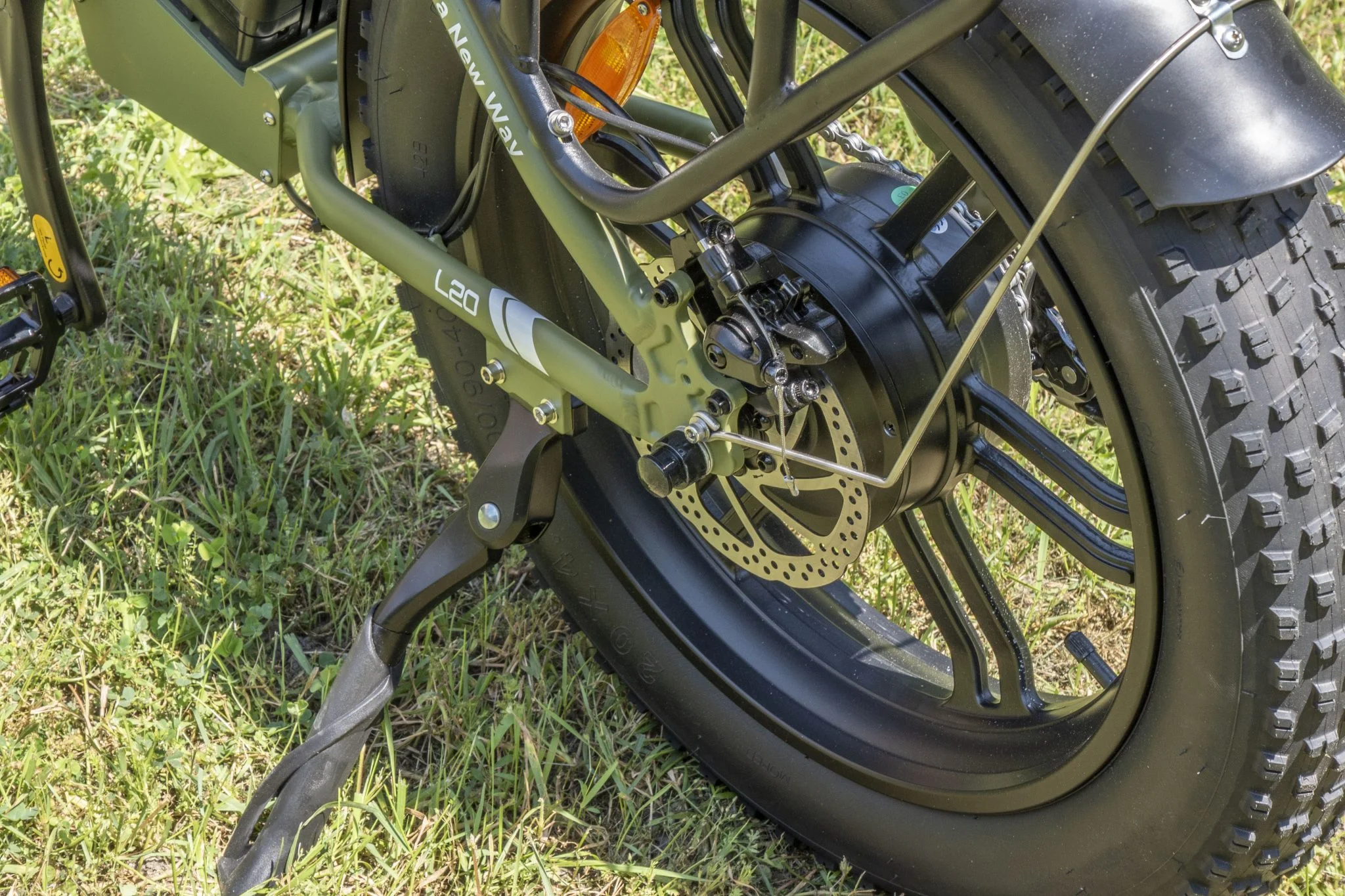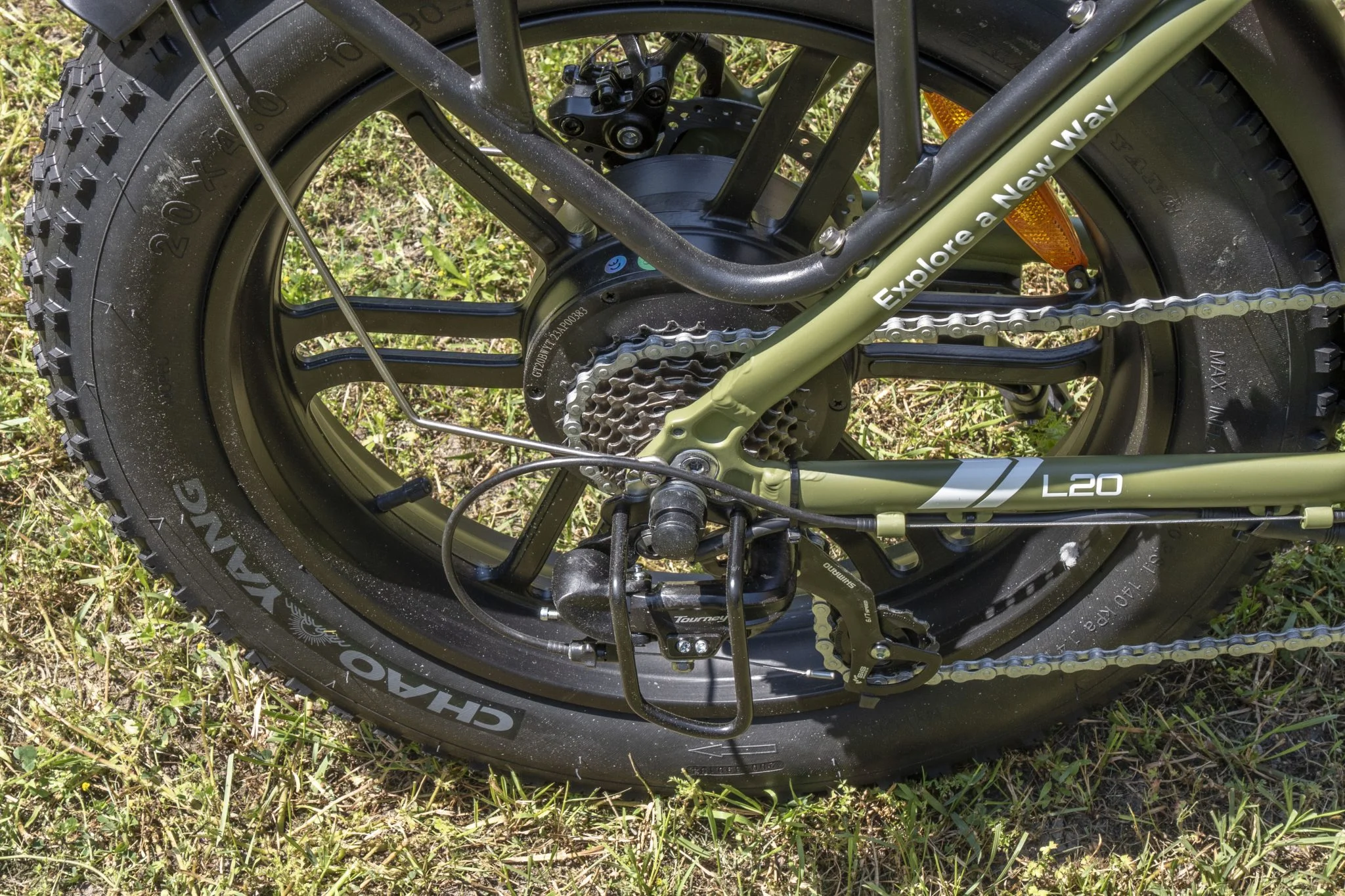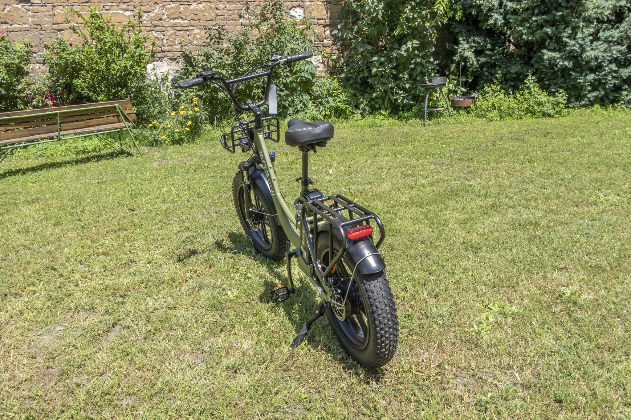 pedig amilyen vadállatnak néz ki, ahhoz képest sokkal erősebbre számítottam, a Laotie pl. 1000 W-os volt, és hát imádtam az erejét. Viszont 55 newtonméter áll rendelkezésre, ami elég sok, a gyártó is a „high-torque” jelzővel illeti, szóval ez egy nyomatékra hangolt motor. Az Engwe L20 fő előnye a brutális hatótáv, a nyereg alatt ugyanis egy 13 Ah-s akku bújik meg, a rendszer 48 V-os, vagyis 624 Wh-val gazdálkodhattok, ami nem kevés. A hatótávja teljesen elektromos módban, a gyártó szerint 60-66 km, míg PAS – vagyis pedálrásegítéses módban – akár 140 is lehet. Ezek azért eléggé erőteljes számok, és hát nem is annyira könnyen tesztelhetők, de azért mindent megtettem, hogy kiderüljön az igazság.