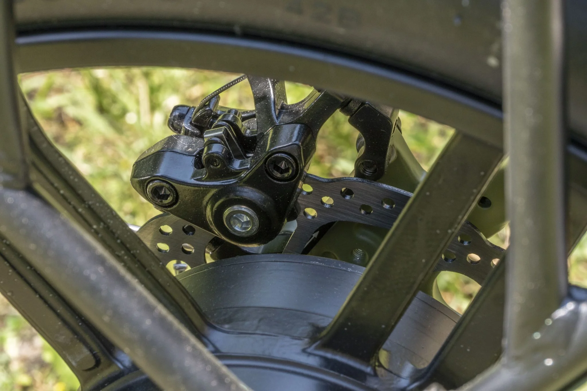 Szóval meghúztuk a csavarokat, felpumpáltuk a kerekeket, megnéztük szépen vált-e a váltó, illetve megpróbáltuk beállítani a féket. Nagyon sok tesztben kattogtam már, micsoda hulladék fékeket raknak ezekre, egy csomónak görbe a tárcsája, a pofa csak egy oldalról nyomja, csikorognak, szóval tényleg a legolcsóbb szutyok mind. Szerencsére a fékhatással nincs gond, de viszonylag ritkán szoktam állóra fékezni a kerekeket, finomabb lassításnál meg hallgathattam a vernyákolást. Állítólag 500 kili körül bekopik, az M5 Pro roller kapcsán így történt, de hát ki akarja ezt hetekig hallgatni? Én biztosan nem.