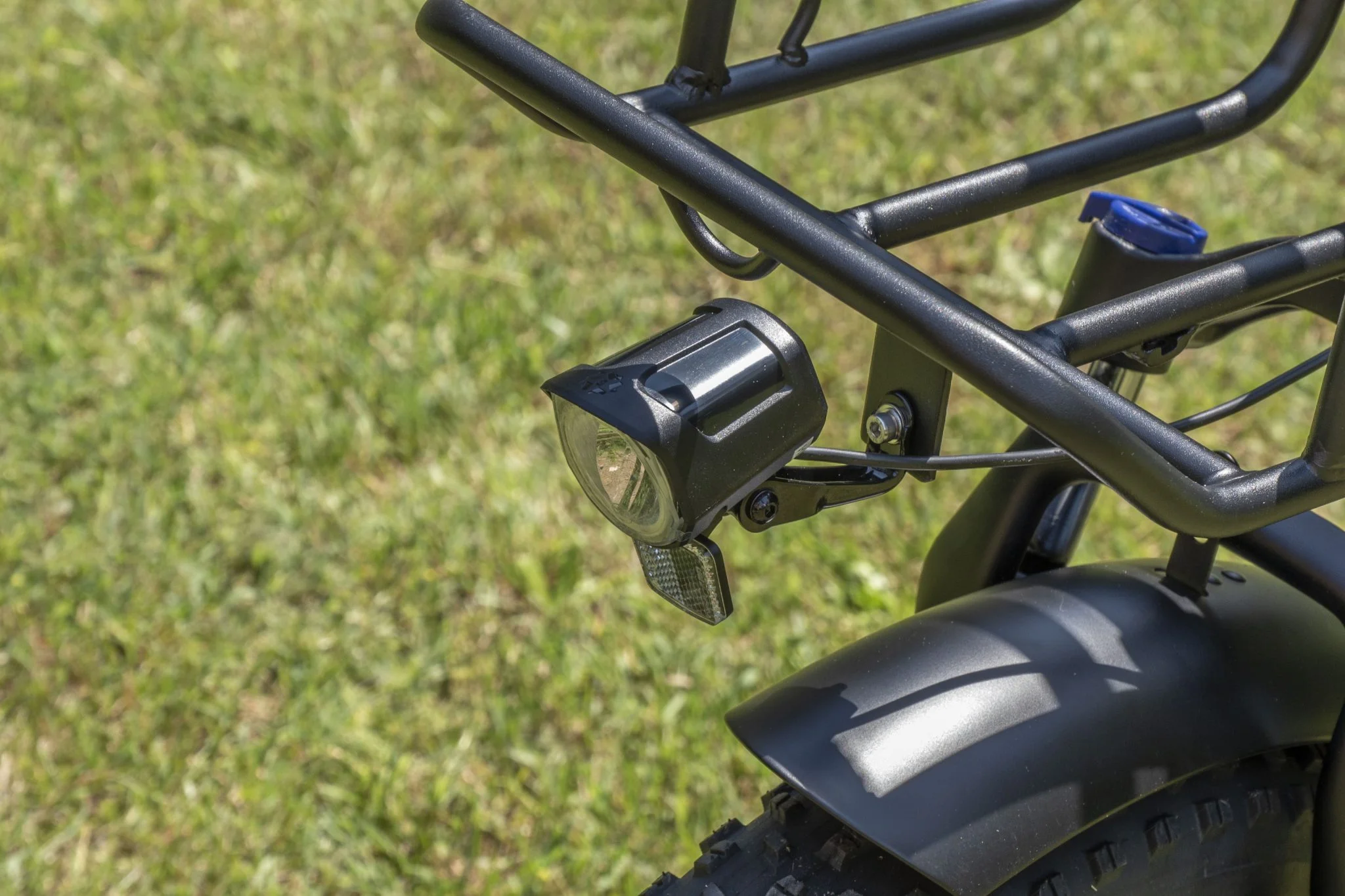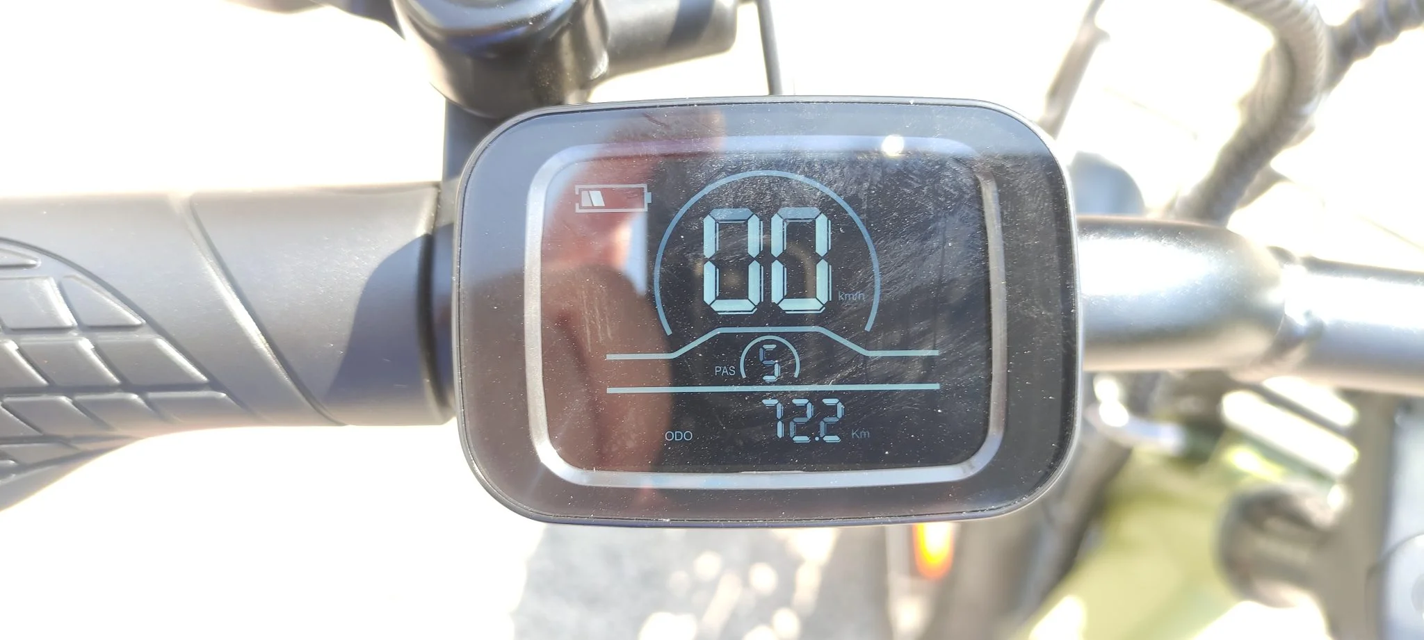 Elektromos módban meg a 40, vagyis erőteljesen túlzók a gyári adatok, de azt elhiszem, hogy 18 km/h-ra korlátozva – ami a 4-es fokozat – még ez is kijönne egy teljesen sík úton, ideális körülmények között. Ami a fedélzeti komputert illeti, az eléggé fogalmatlan, az ODO és a TRIP érték tök ugyanannyi volt, akkor viszont nem tudom mi értelme, a merülést pedig csak úgy „kábéra” jelzi, szóval inkább tapasztaljátok ki, alattatok mennyit ír. A kijelző napfényben is látható, viszont csal a megtett út hosszával kapcsolatban egy szűk 10%-ot, ami már eléggé sok. A lámpák az elmegy kategóriába sorohatók, örüljetek hogy van, de mivel a kormányon lévő csőváz rengeteg helyet ad, én ezt ki is használnám egy durvább lámpa és egy jobb kerékpár komputer felszerelésére.