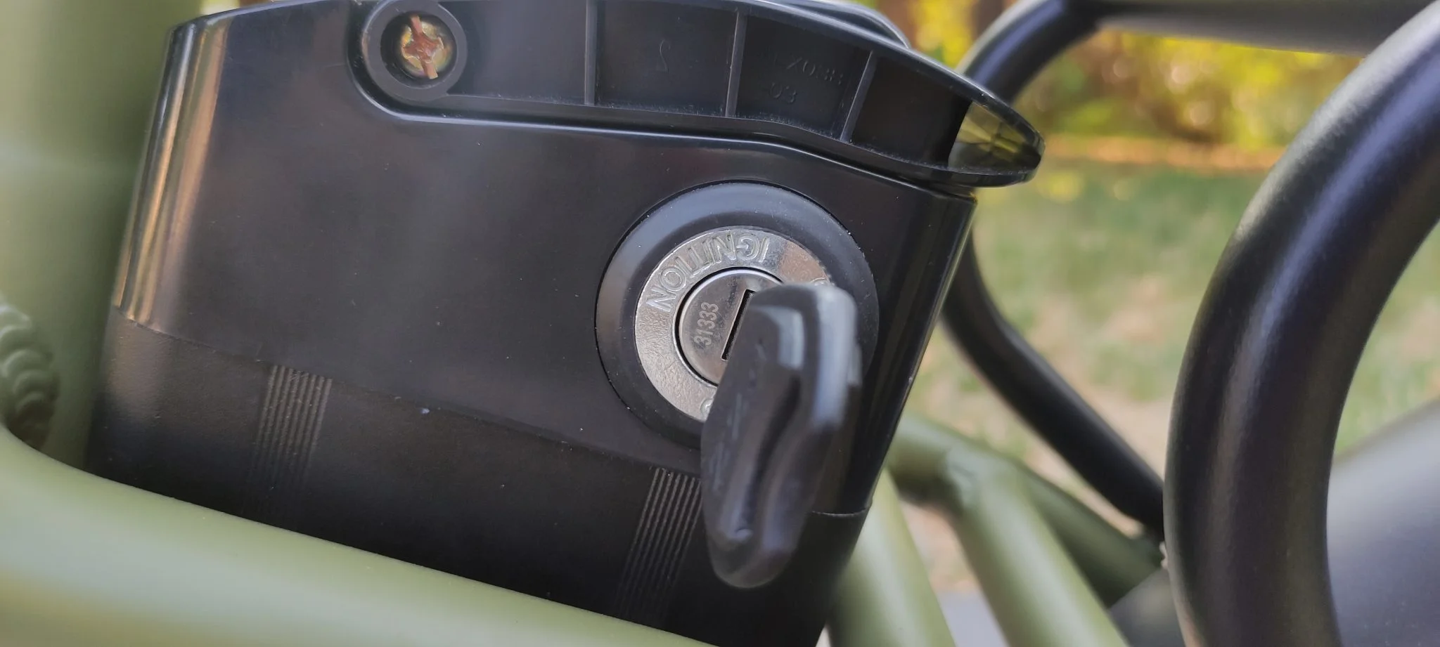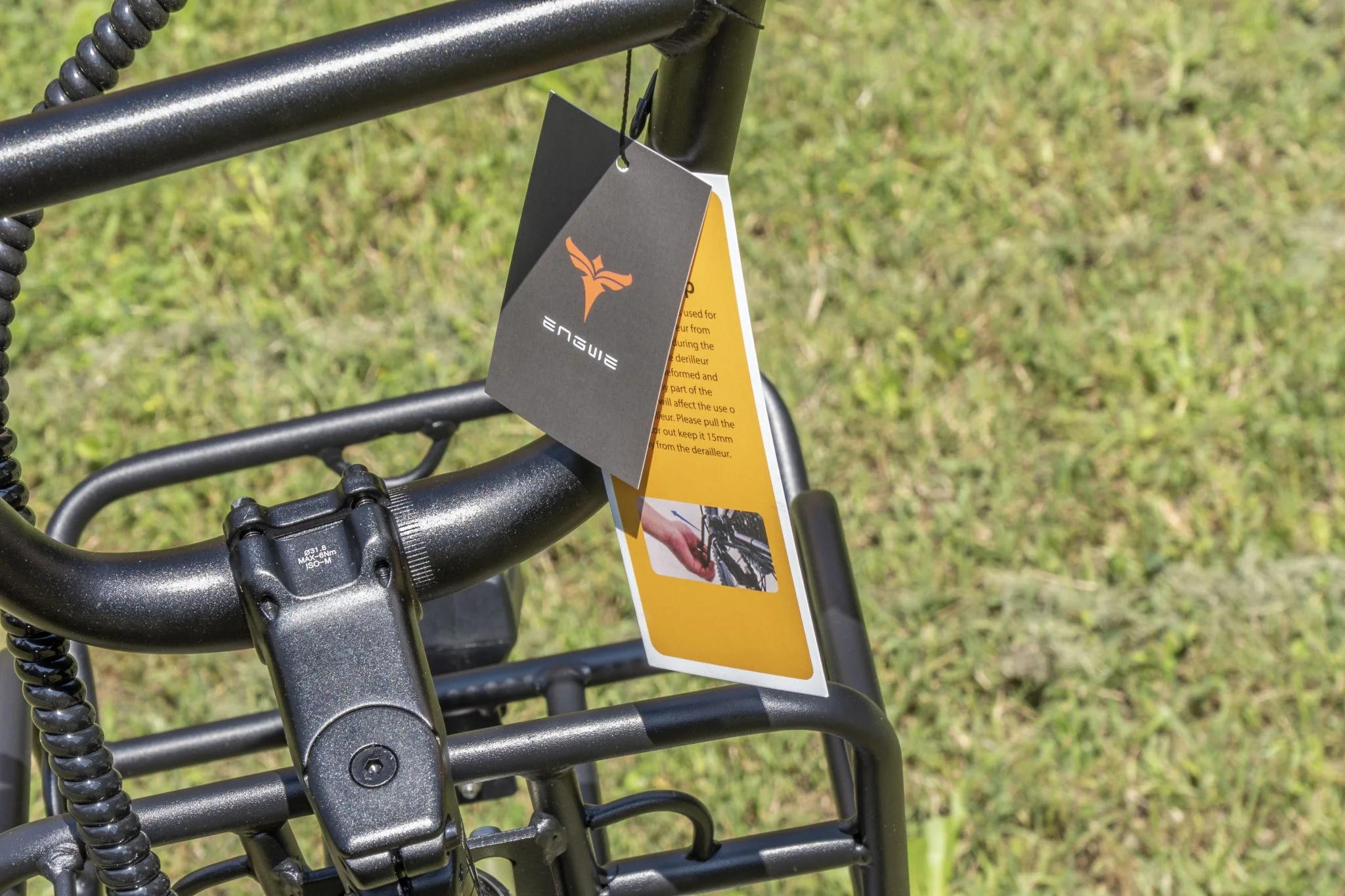 Ezek a 4 colos bütykös gumik ugyanis aszfaltra cseppet sem ideálisak, folyamatosan „zenélnek”. A másik bajuk az, hogy mivel szélesek, nagy ellenállást is fejtenek ki, így mint hagyományos bringa, az Engwe L20 nem igazán használható. Persze ott van a hétsebességes váltó, de hosszabb távon még így is kényelmetlen tekerni. A másik, hogy az elektromos rész beindításához az „igniton”, vagyis a gyújtás állásba kell fordítani a kulcsot, amit ilyenkor nem is lehet kihúzni. Értem mögötte a logikát, hogyha nincs benne a kulcs, nehezebb ellopni, mert nem megy a rásegítés, de elég szokatlan megoldás ez ellen így védekezni, helyette inkább ellentarthatna a motor. A másik a tömege, 34 kilogramm, ami brutálisan sok. Nincs is hol megfogni, maximum a nyeregcsőnél, ami meg tiszta zsír, hogy ki/be lehessen huzigálni, szóval lépcsőn felvinni igazi kínszenvedés.