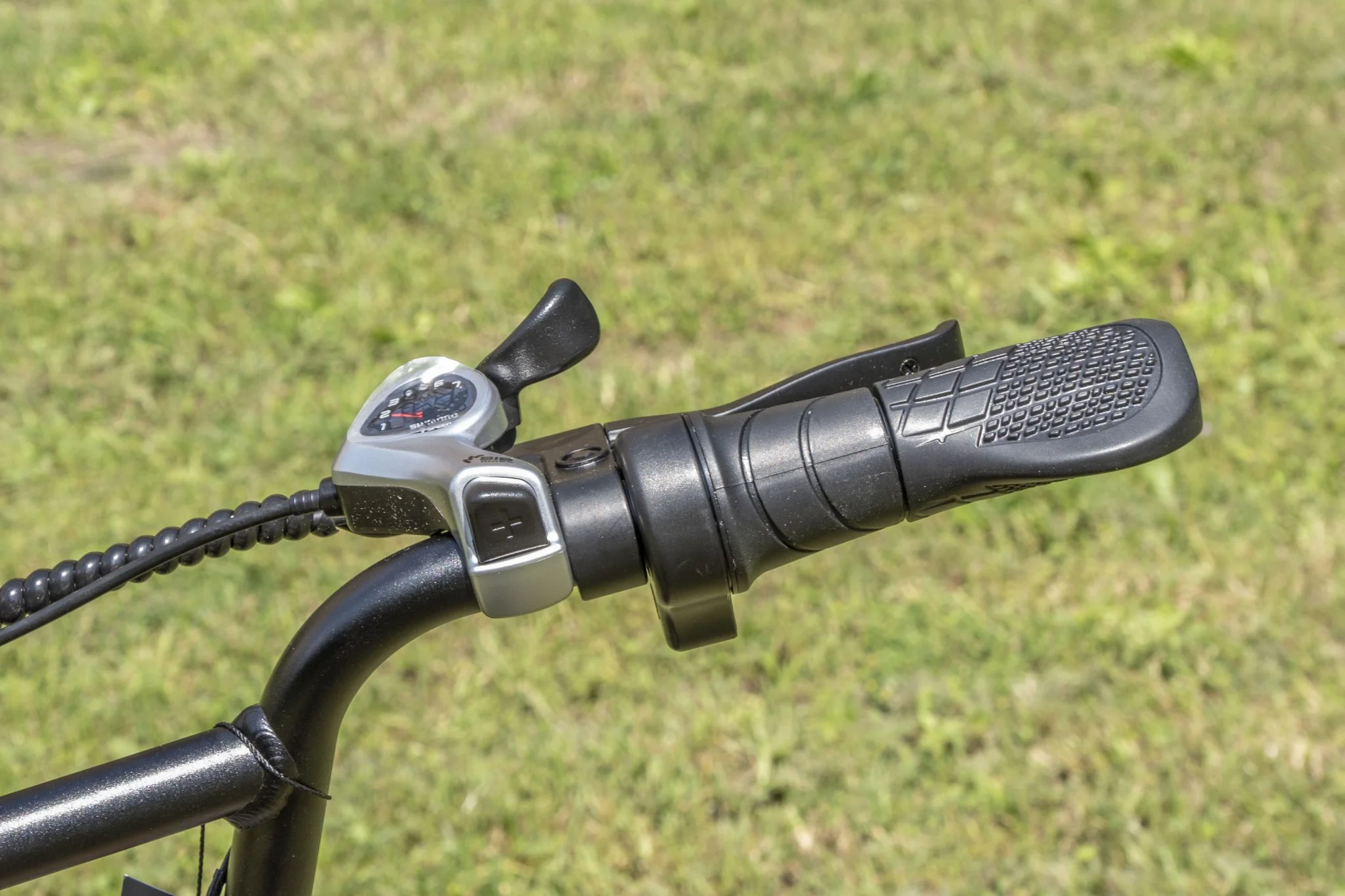szinte elalszik rajta az ember, úgy ringat. Az ülés zselés, 60 kili után sem fájt a csúnyábbik felem. Az első rugóstag szépen csillapít, és a motor is húz mint az állat. Érződik az 500 W, amit egyébként a kézikönyvből lestem ki, ugyanis a sajtóanyagban 250 W van, hogy az EU-ban is mindenki megnyugodhasson. Mivel ez egy pedál- és nem egy nyomatékszenzoros bringa, ezért nincsenek fokozatok a rásegítésben. 1 bites a rendszer: vagy tol, vagy nem, viszont 5 fokozatban lehet állítani a rásegítés felső korlátját. Ezért is jó, hogy van kézigáz, mert ha lejtőn felfele kell elindulnotok, már beletekerés előtt segíthettek magatokon egy kis krafttal. Sétáló mód viszont nincsen, vagyis a kocsmából hazafele támaszkodásra nem ez a jó modell.