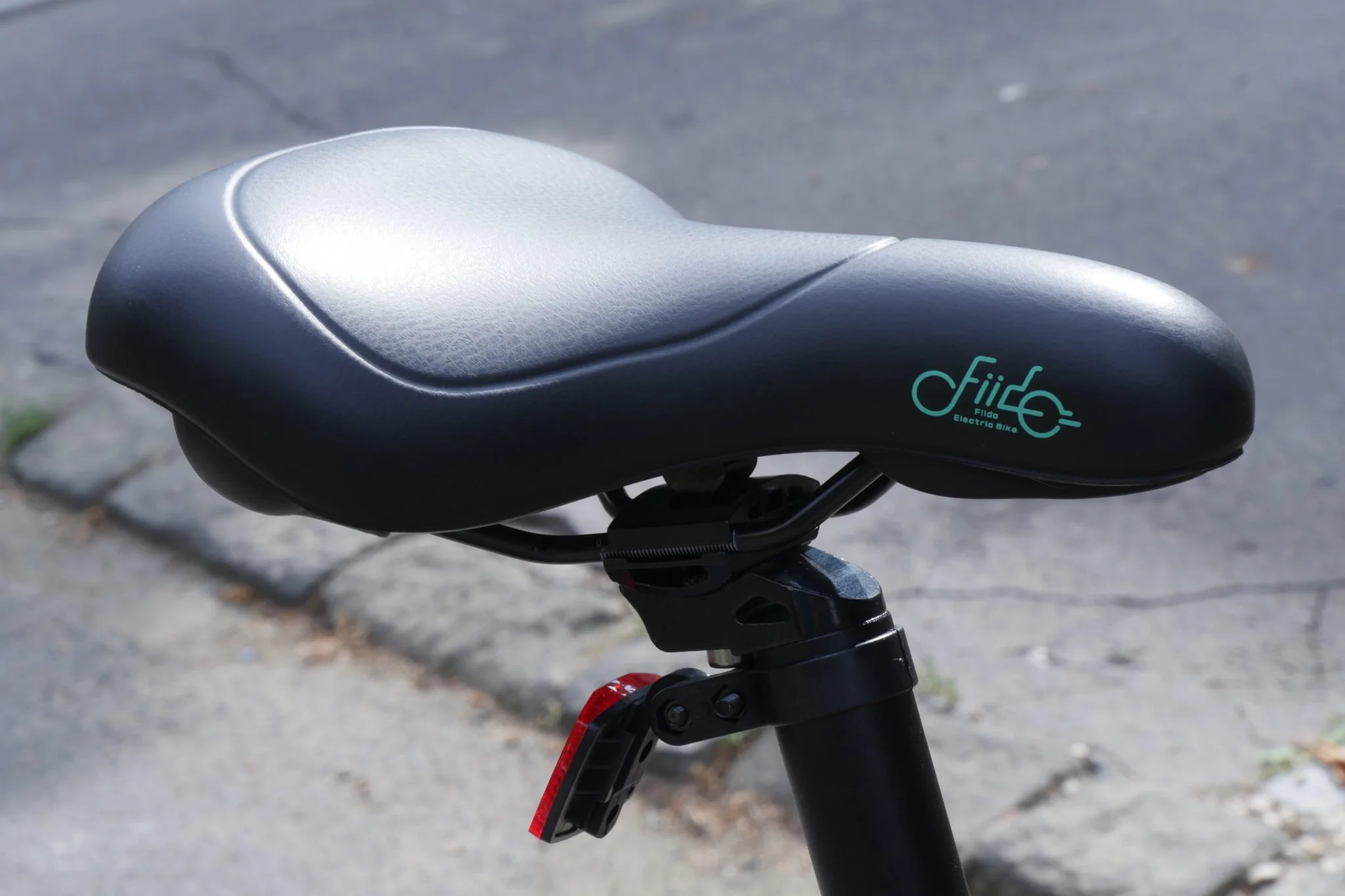 Fontos dolog, hogy a feneketeket ne törje nagyon az ülés, aminek a formájából már lehet következtetni arra, hogy ez bizony nem egy versenykerékpár, de ezt sem a pozíció, sem az ülésforma nem teszi lehetővé. A csini Fiido logóval ellátott ülőalkalmatosság inkább széles és közepesen puha, mint vékony és kemény, hosszabb távon sem gyilkolja az ülepet, pedig a hatótáv tesztelésekor erre azért lett volna lehetősége. Majdnem ideális, de aki nem ehhez szokott, még mindig kicserélheti a neki megfelelőre.