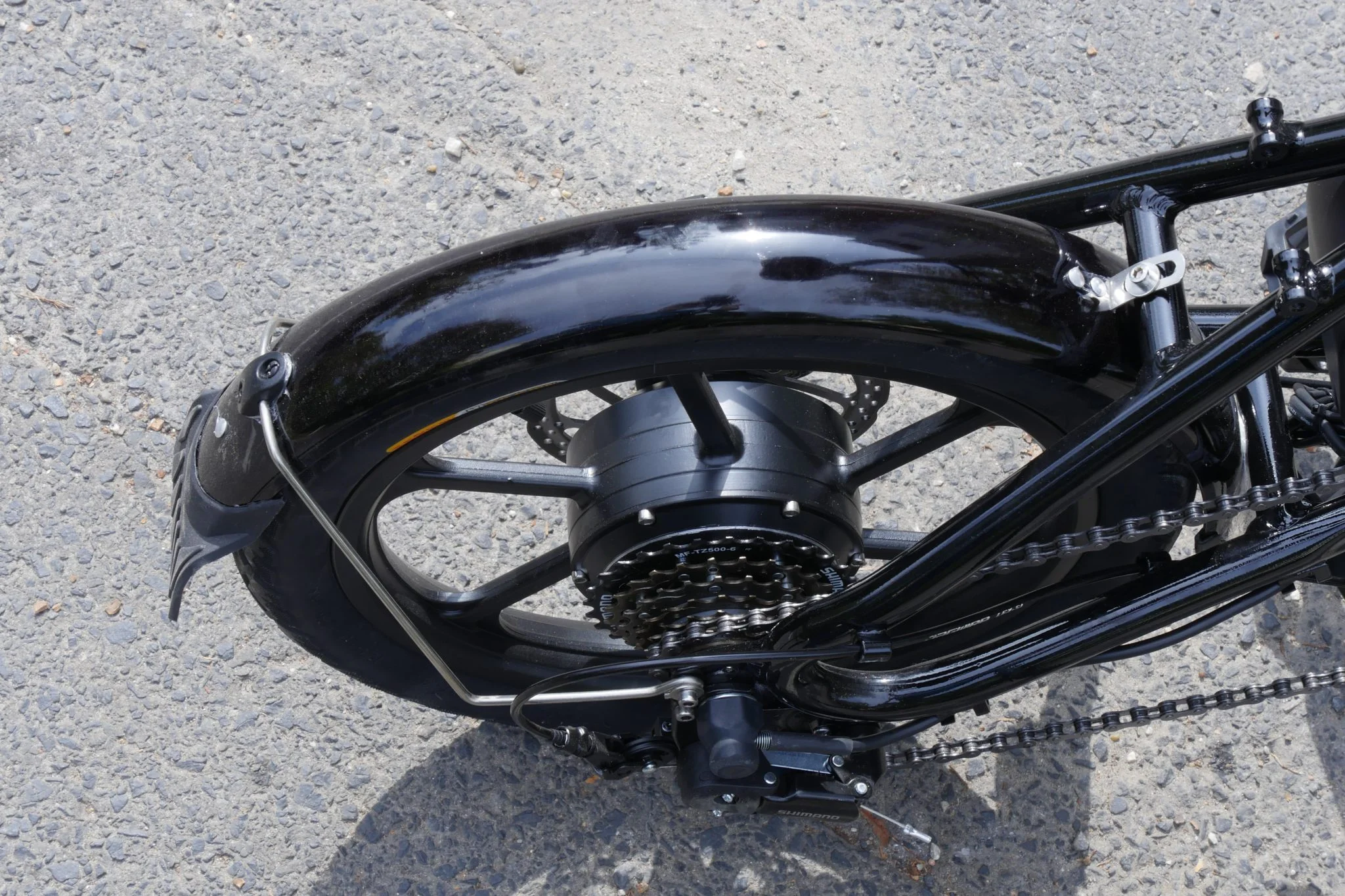 Azért, hogy ne csak jót mondjak, ebben a bandában is volt egy kellően ostoba kínai, aki úgy rakta fel a sárhányót, hogy rajta hagyta a fóliát, majd rácsavarozta a dolgokat. Emiatt ha le akarjátok húzni, újra szét kell csavarni az alkatrészeket és leszedni a műanyagot. Ez esztétikai kérdés, semmiben nem befolyásolja a használatot, de ezt a szép feketére fényezett, nosztalgikus Pannónia motor érzést kár lenne vele elrontani. Az viszont bosszantó, hogy már a kezdetektől surrogott valami a sárhányó alatt, ami később megszűnt, lévén levált a műanyag záróelem, ennek valamelyik része ért hozzá a gumihoz.