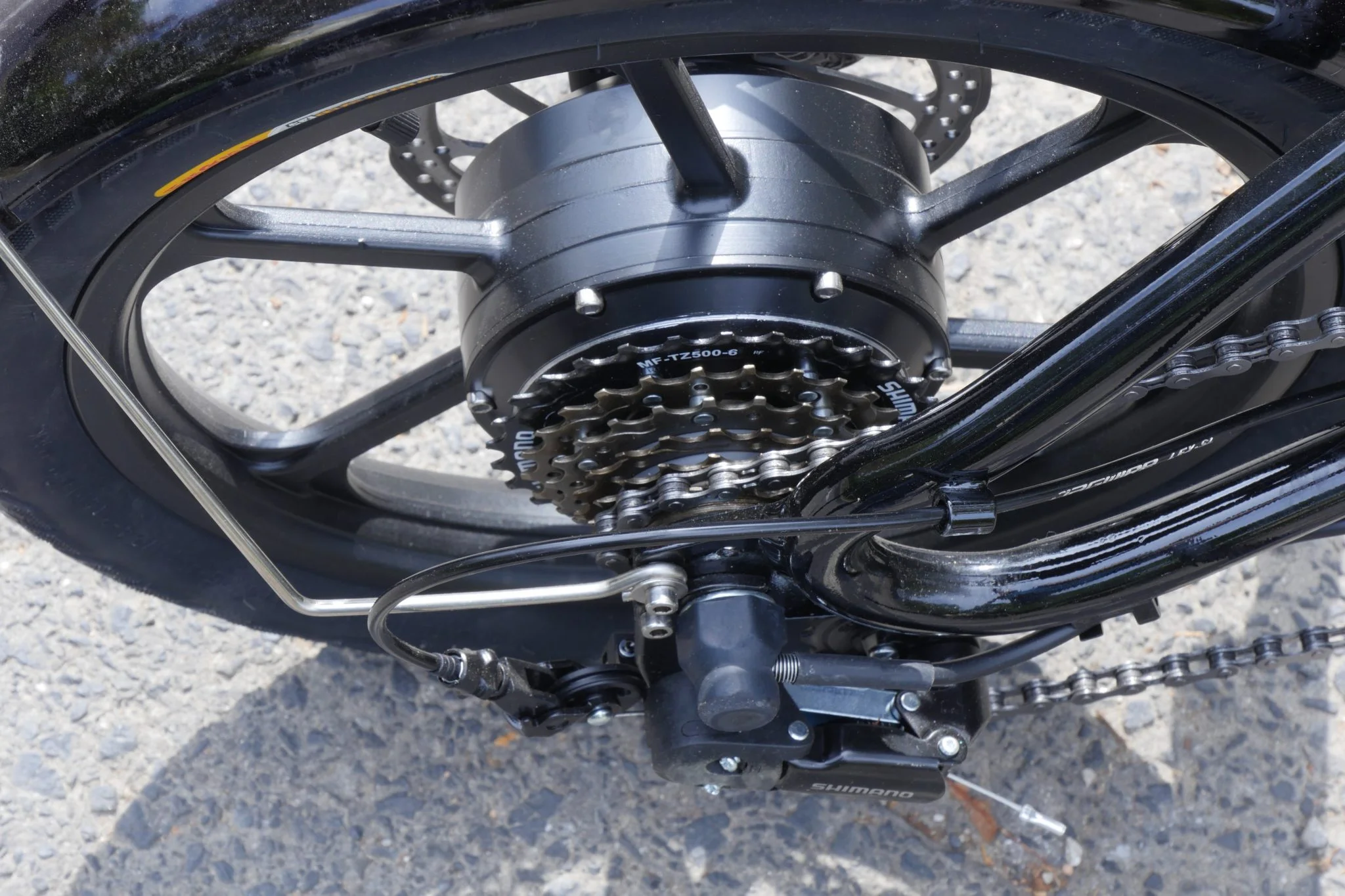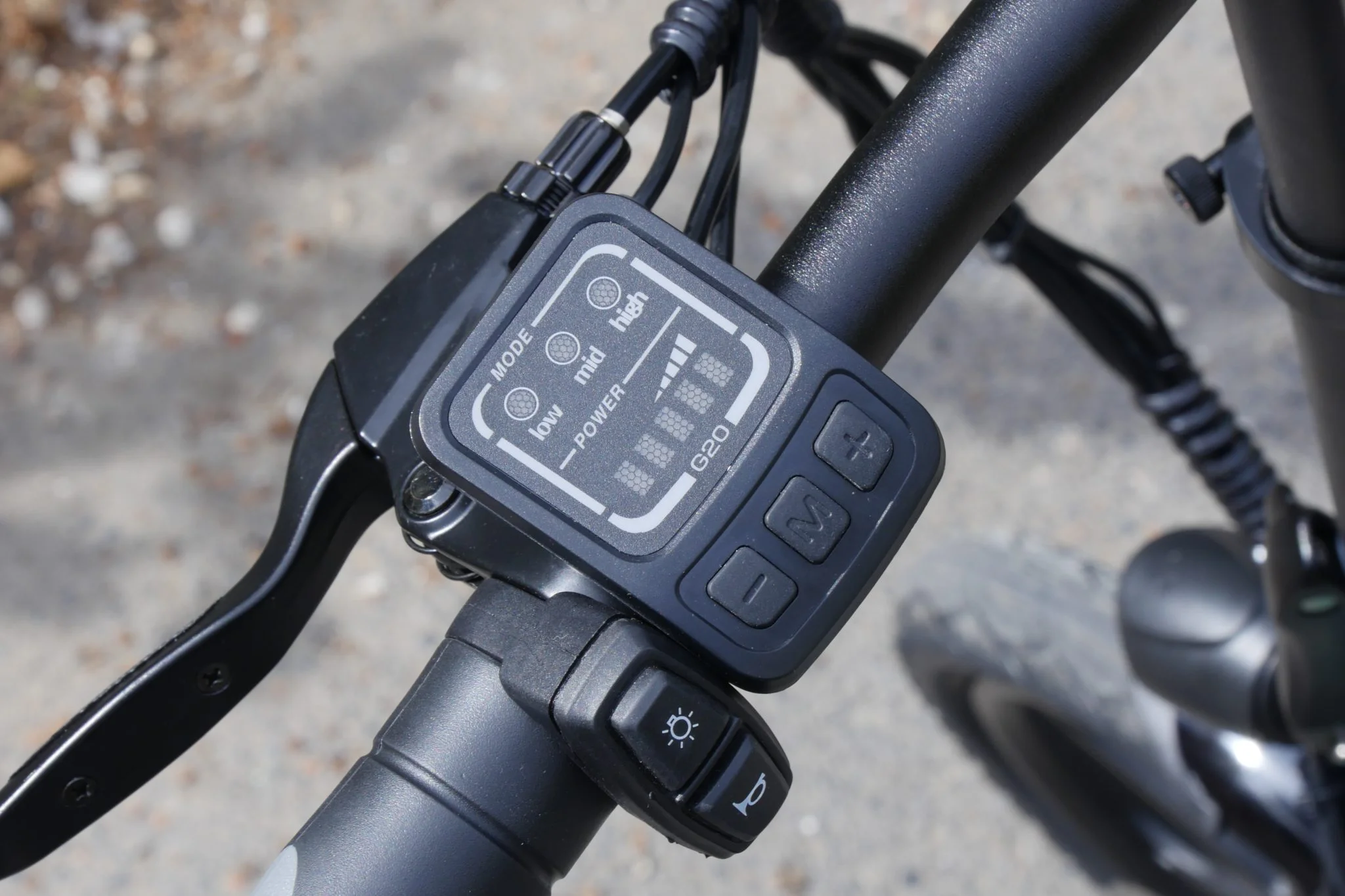 A váltó tökéletesen működött, vajpuha, de mivel a motor a tekerésre rásegít, majdnem mindegy, melyik fokozatban hagyjátok. A jobb markolat tövében van a gázkar, ami húzásra akkor is megindítja a kerékpárt, ha nem tekertek, így összességében három módon is haladhattok: teljesen elektromos, teljesen saját erőből és a kettő keverékével, ami a moped mód.
