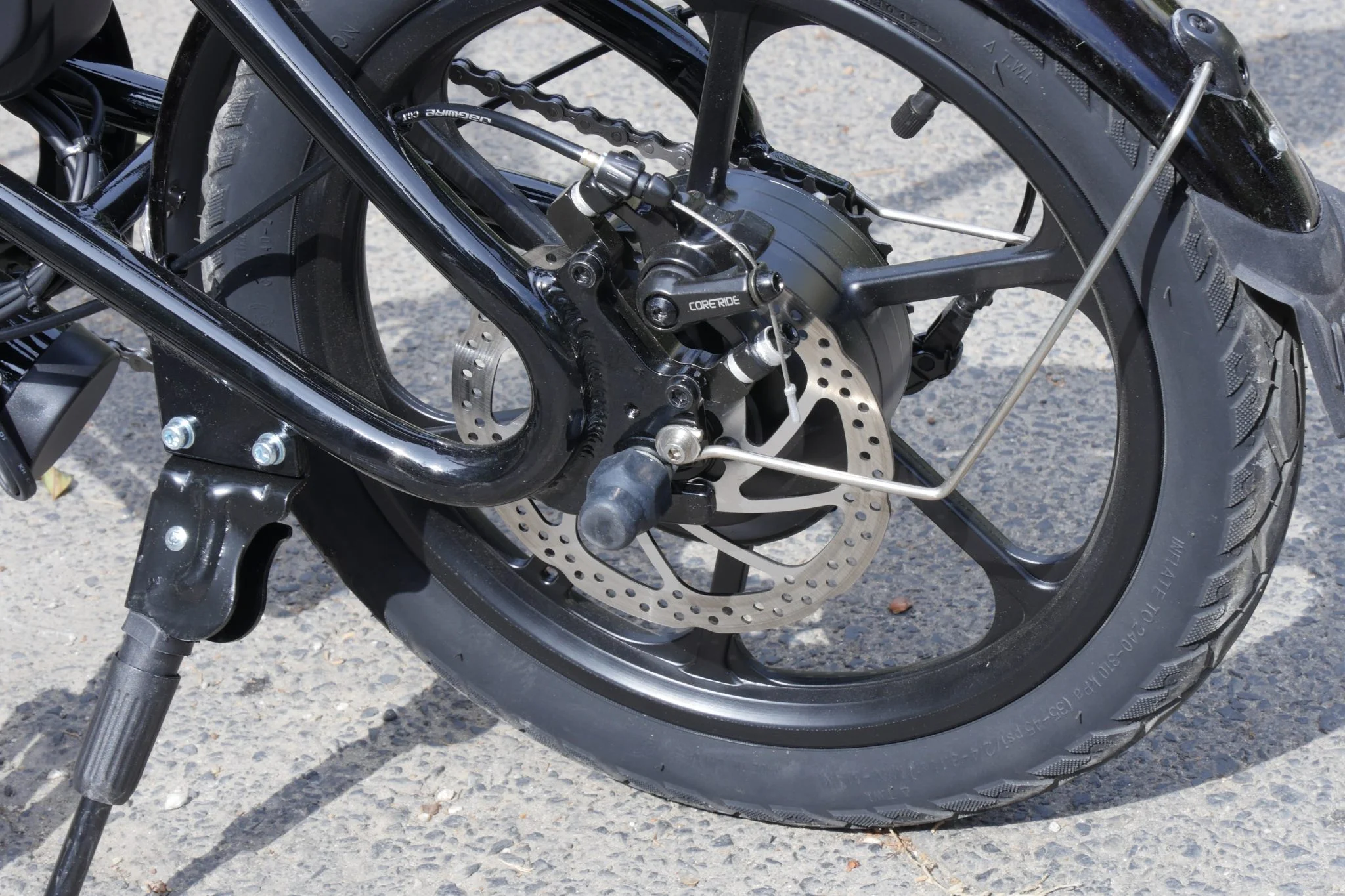 A kereke a leírásokkal ellentétben 16 colos és nem 14, és nem a hagyományos küllős, hanem a modern autók alufelnijéhez hasonlatos megoldást használt a gyártó. Van rajtuk macskaszemnek kiképzés, de ezt a doboz nem tartalmazza.