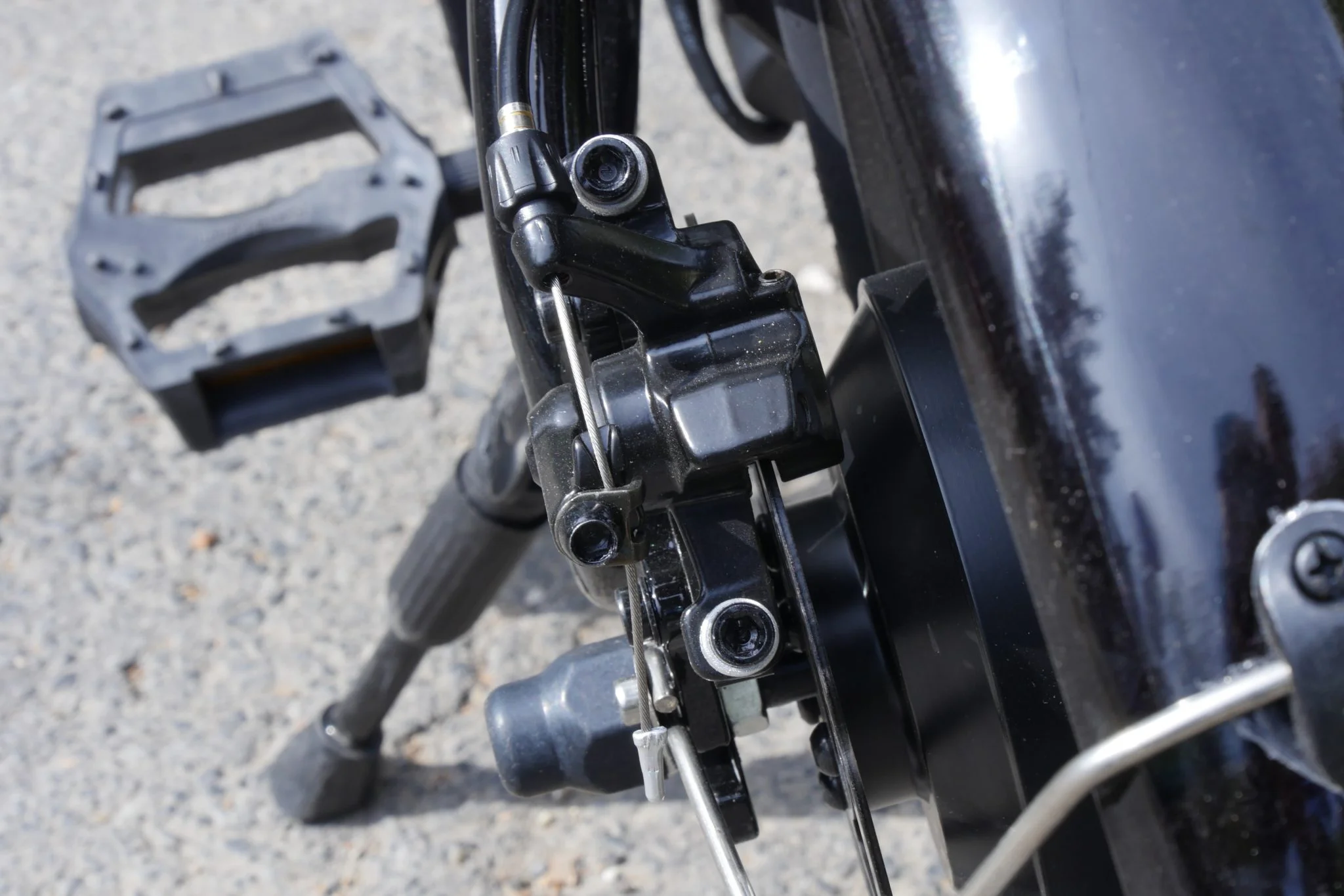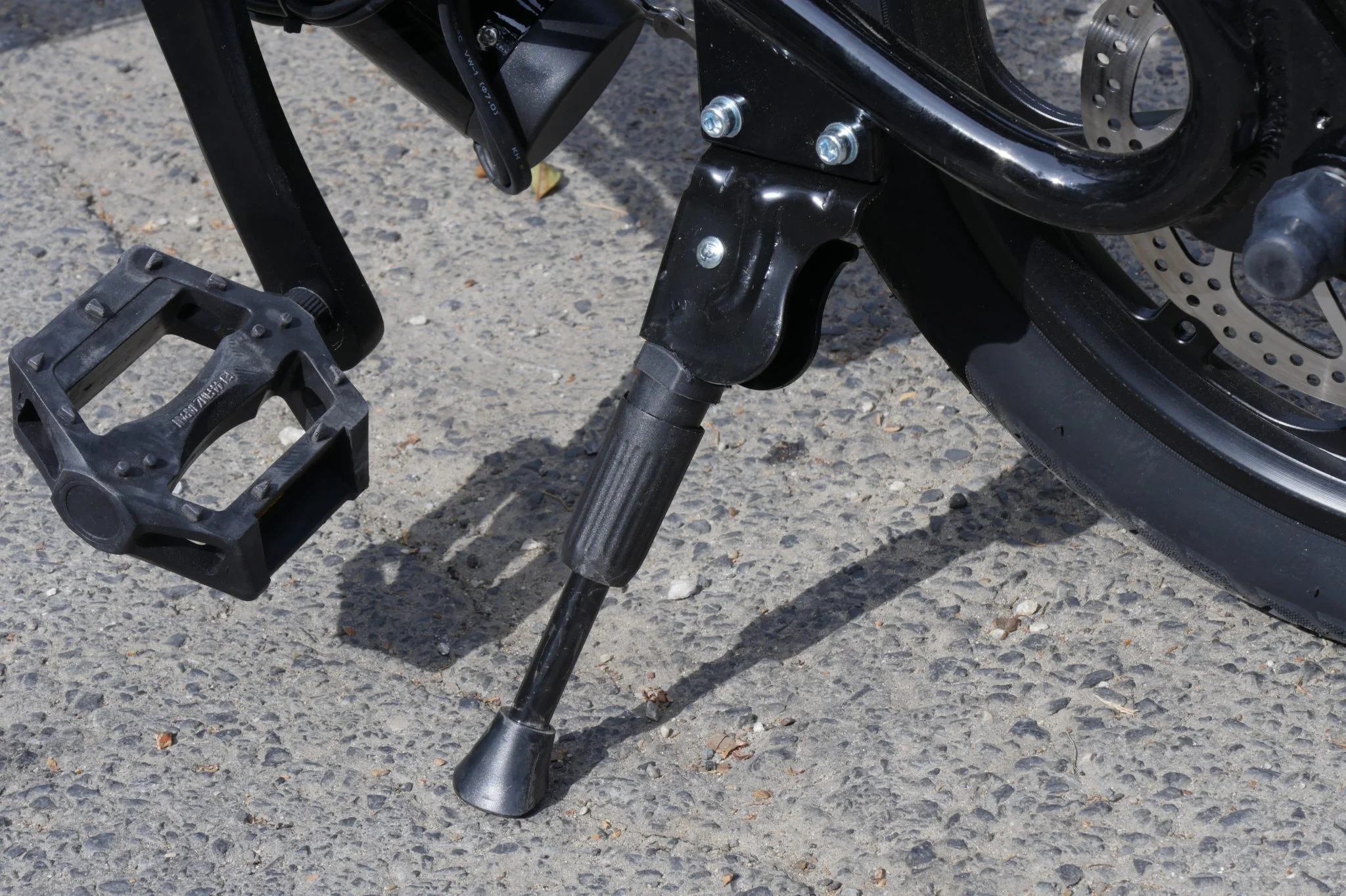 Bosszantó dolog, hogy a bal oldalra eső sztenderhez közel esik a cipő sarka, ami az én 43,5-ös lábamnak nem gond, de egy ennél nagyobb méret esetében már simán bele lehet rúgni, ami szerintem ergonómiai hiba.