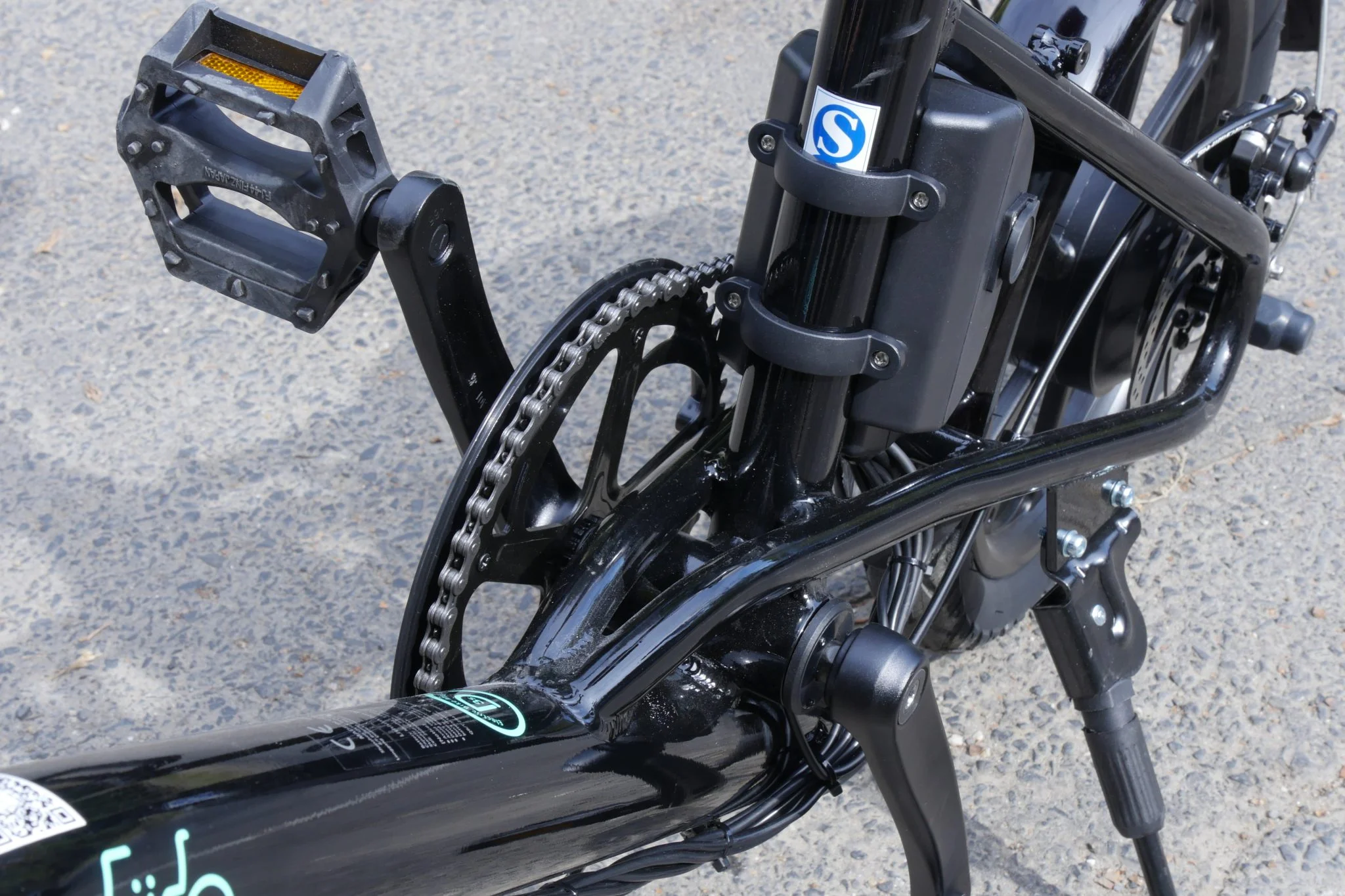 Ami szerintem kardinális kérdés, hogy a fék jól fogjon, ezt például a Kugoo S1 Pro nem mondhatja el magáról, a Gellért hegyről lefele konkrétan nem voltam képes a motorfékkel megállítani. Itt erről szó sincs, a tárcsa az tárcsa, „szélvédő kifejelősen” fog, szóval az elsővel csak ésszel. A hátsóval viszont állat módon lehet farolni, nálam ez volt a sláger, újra „tizenöt éves hülyegyereknek” éreztem magamat. Sajnos iszonyatosan hangos tud lenni, ha nincs jól beállítva, ami viszont elég szarakodós feladat. Sajnáltam még, hogy nincs keresztben a „tökbeverős” vázmerevítő rúd, nem lehet vele kéz nélkül menni, cserébe az utódok biztonságban vannak.